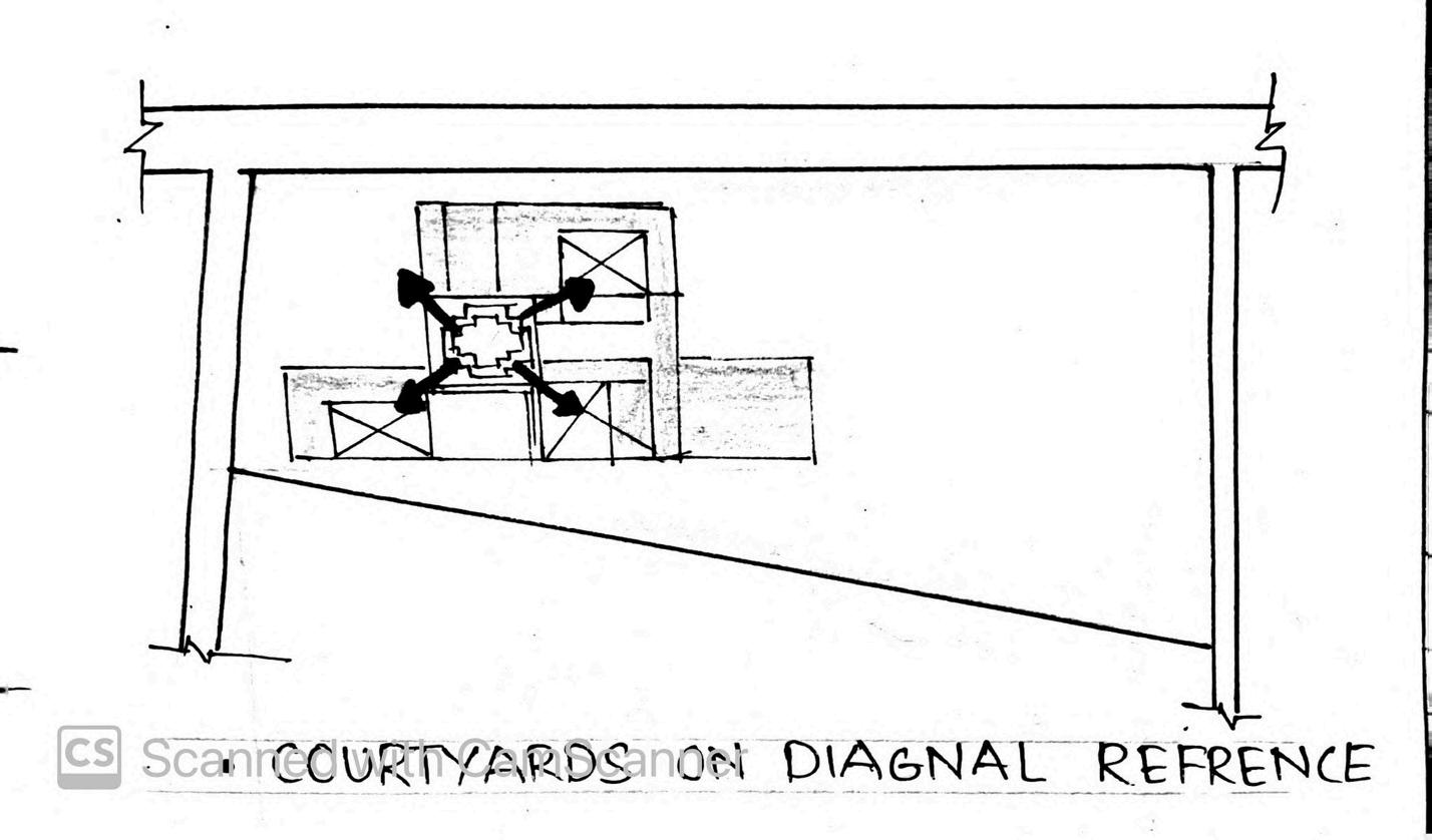 Diagonal courtyards stemming from the central courtyard separated according to functions