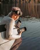 – On upea näky, kun auringonlaskun oranssin eri sävyt leikittelevät veden liikkeen mukana luoden kauniin vastavärien kontrastin sinisen veden kanssa! Pidän erityisesti isojen kohteiden kuvaamisesta, ja haaveenani onkin päästä vielä joku päivä kuvaamaan valaita avomerelle, hän sanoo.