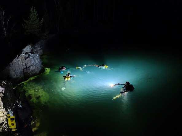 ta sukeltajista nousseessa pölläkässä. Olosuhteista huolimatta kaikilla, myös Diversnight-ensikertalaisilla, tunnelmat olivat loistavat. Pinnalla keli oli suotuisa, noin viisi astetta ja sateetonta. Ensi vuoden Diversnight-tapahtumaa odotellessa, hän lisää.