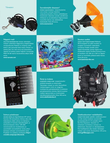 ajatellen sukellusskootteri voi olla mukava hankinta nuoremmille perheenjäsenille. 8–10-vuotiaille sopiva Sea Doo Aquatanta -skootteri on tarkoitettu snorklailuun, uimiseen tai leikkimiseen. Skootteri on akkukäyttöinen. Normaalikäytössä akku kestää valmistajan mukaan noin tunnin. Suositushinta 129 euroa. www.grillikauppa.com