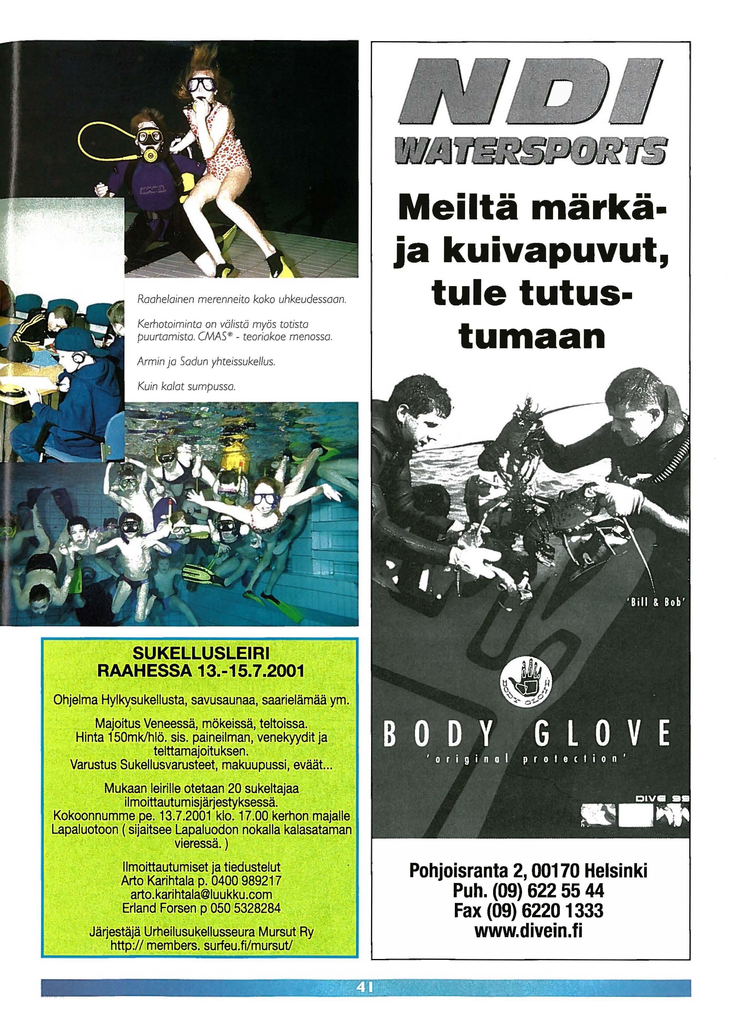 Kirjalliset hakemukset palkkatoivomuksineen 21.6.2001 mennessä osoitteeseen: Suomen Urheilusukeltajain liitto ry.