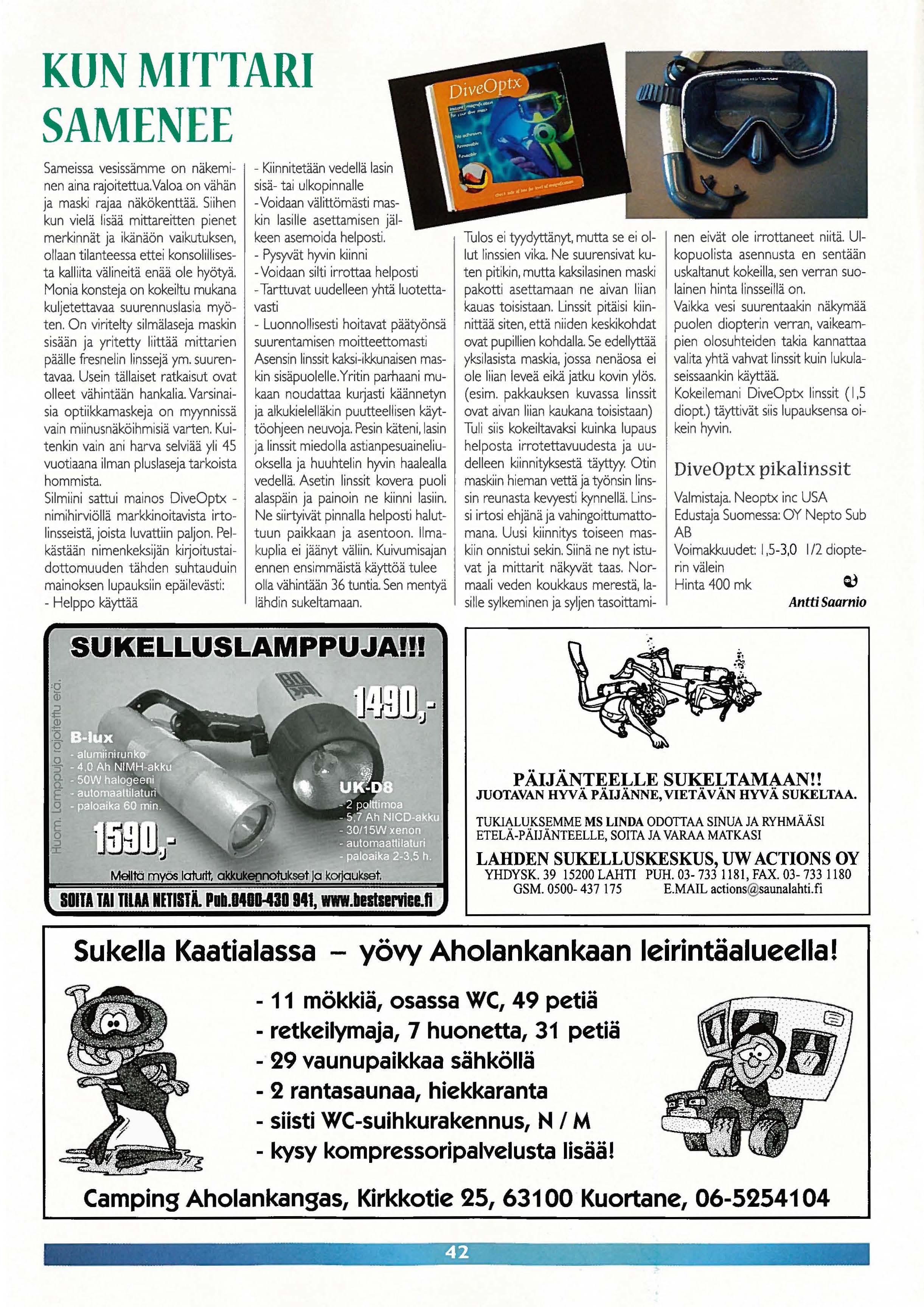 Sukeltaja-lehden toimittaa numerosta 4 alkaen Onnion MarCom. Toimitussihteerin tehtäviä hoitaa edelleen tuttu Leena Koivumäki ja ilmoitukset myy edelleen Reijo Vainio.