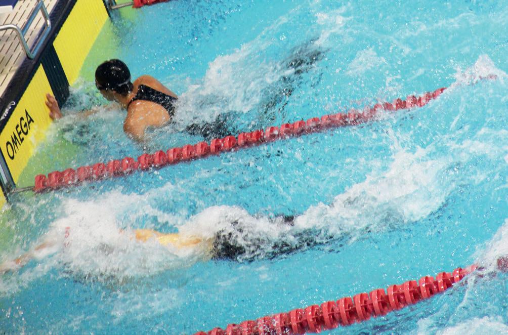 2. Sukeltaja yrittää estää vajoamista potkimalla.