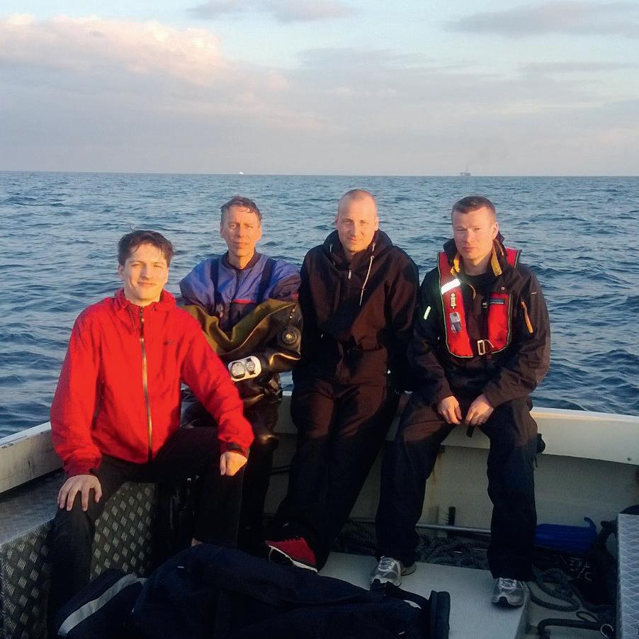 Sukella Suomessa -kurssin jälkeen. Oppia hakemassa Tuomas Mikkola (vas.) ja Jari Köngäs (3. vas.).