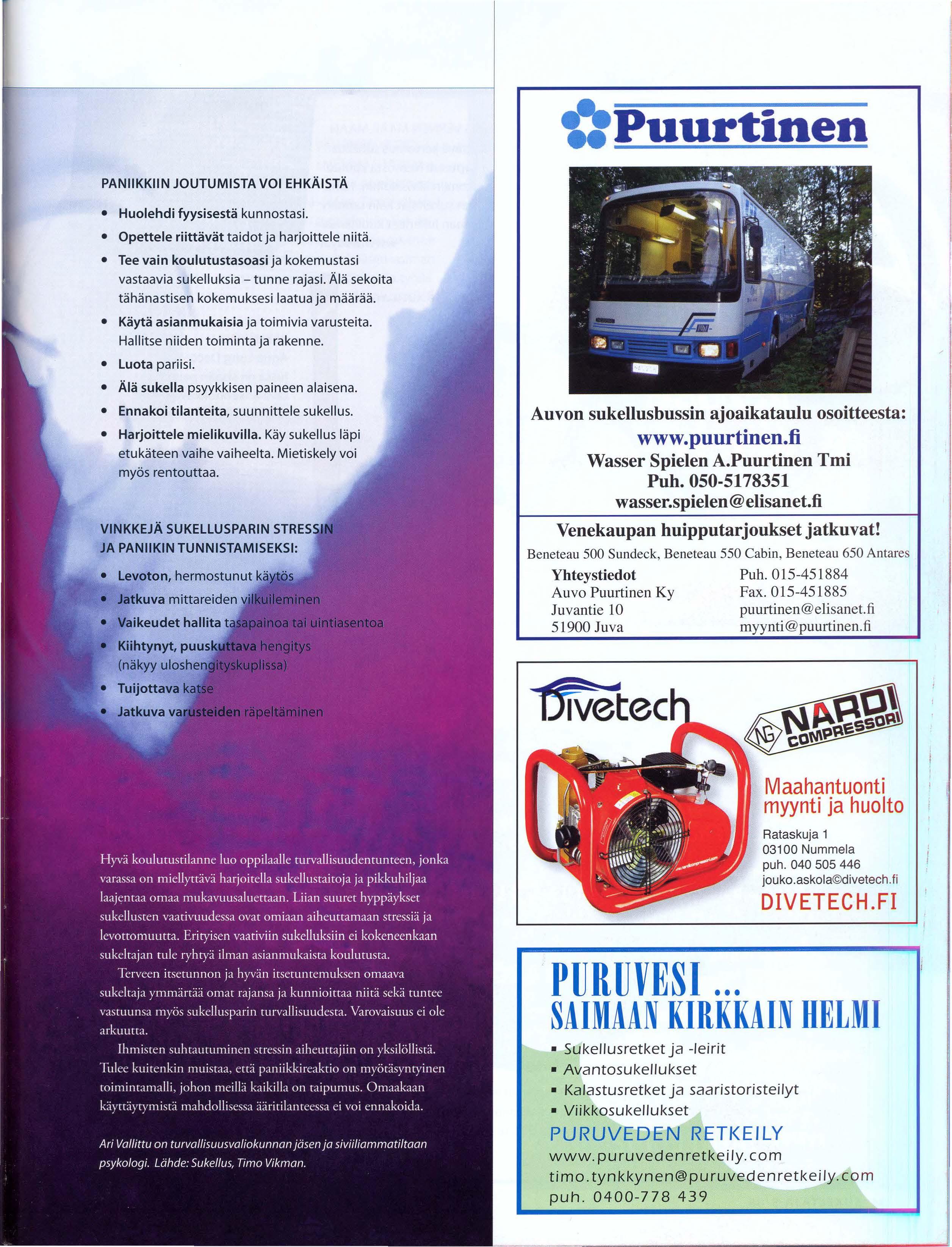 YHTEYSTIEDOT, TAPAHTUMAT JA SEURAT KAUTTA MAAN LÖYDÄT MYÖS INTERNETISTÄ OSOITTEESTA WWW.SUKELTAJA.FI