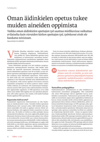 12 Oman äidinkielen opetus tukee muiden aineiden oppimista