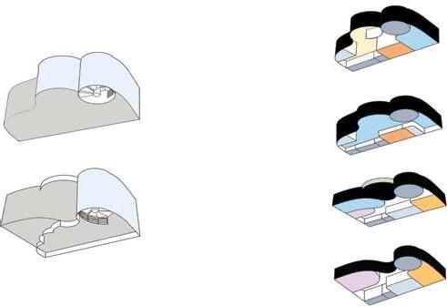 A A B Spatial Strategy Floor Plan 1 Floor Plan 2 Floor Plan 3 Floor Plan 4 Gathering spaces Workspaces Education public area Floor Plan 5 Public Space (Corridors, Lobby) Education Spaces (Exhibition, Workshop) Gathering Spaces (Lecture, Meeting Rooms/Events) Cafe / Kitchen Vertical Circulation (Stairs, Lift/Elevator) Facilities Spaces (Storage, Toilets, Utility/Garbage Workspaces: Research Area Workspaces: O ce Spaces / Desks Area Green/Landscape Areas Programmatic by Layers