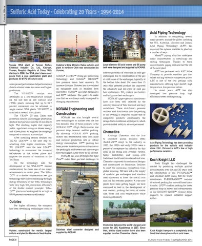 Koch Knight transports a completely brick lined final absorption sulfuric acid tower. Sulfuric Acid Today • Spring/Summer 2014