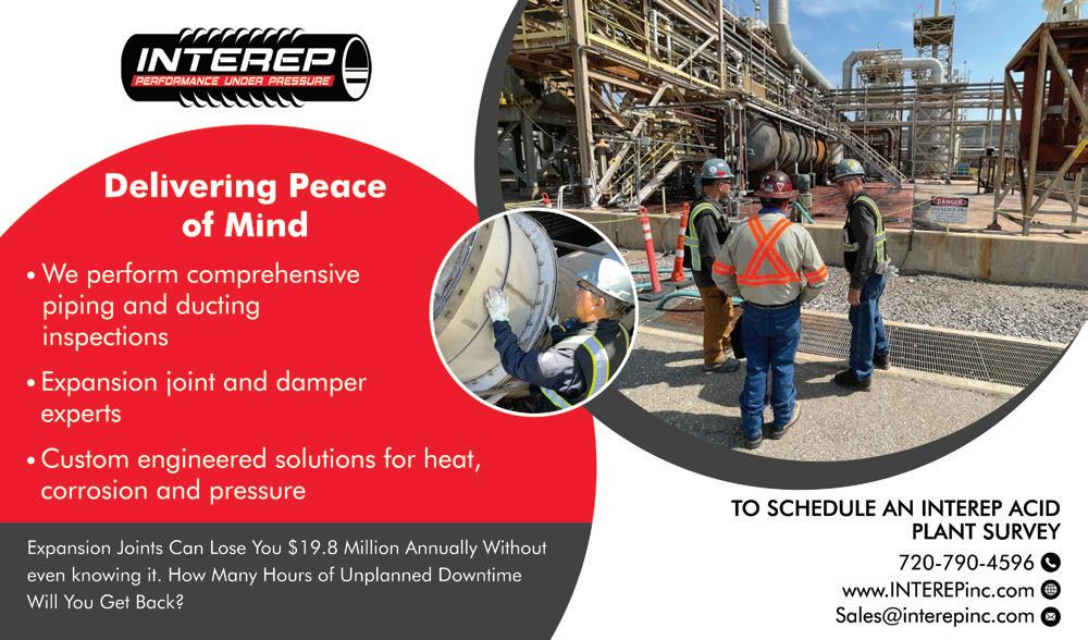 For plant personnel interested in registering for the event, please visit www. acidroundtable.com. For vendors and technology providers interested in participating, please contact Kathy Hayward at kathy@ h2so4today.com or (985) 807-3868. q