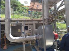 New converter pre-bed handles additional SO 2 -to-SO 3 conversion requirements. IBC’s new blower moves exhaust gas from customers’ sulfonic plant to IBC’s sulfuric plant and enables both plants to operate at capacity without significant pressure drop. IBC’s sulfuric acid plant in Manizales, Colombia with sulfur feedstock in foreground. ...To converterthe intermediate absorption tower of the sulfuric acid plant. A 10” diameter pipeline was installed to connect the plants and a centrifugal blower (50K1) was installed to move the gases. The direction of the gas flow was controlled by an HV01 control valve and pressure transmitters in the suction and discharge lines of the blower.