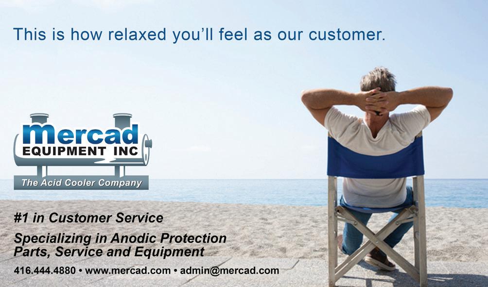 plains the importance of protecting workers from high risk exposures (page 12); INTEREP shares knowledge on how to gain efficiency from the main blower (page 14); Mercad delves into the history of the anodically protected acid cooler (page 16); Elessent MECS Technologies explains how to minimize halide and its effects in strong acid systems (page 18); Central Maintenance & Welding shares how communication is integral for a successful project (page 20); Ecorobotics explains how their robotic tank entry equipment can provide safety and save money (page 22); NORAM Engineering & Constructors shares their CFD-aided design for sulfur furnace optimization (page 24); Topsoe announces its newest catalyst that increases acid production and lowers carbon footprint (page 28); Mosaic shares its recent capital improvements in Florida (page 32); KCM 2000 Holding of Bulgaria overhauls smelting operation with flexible, cleaner solution (page 34); and Savino Barbera of Brandizzo, Italy, has replaced metal with plastic in its line of industrial pumps and mixers (page 36).
