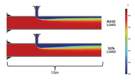 Scenario Feed Velocity [m/s] Temp. Out [°C] Strength Out [wt] 120% Base 2.40 86 97.3% Base 2.00 88 97.2% 90% Base 1.80 89 97.0% 66% Base 1.67 94 96.7% 50% Base 1.00 99 96.2% Feed Angle Min. Coating Length [m] Percent Variation 0° 9.5315° 9.49 -0.4% 30° 9.12 -4.2% PAGE 34 Sulfuric Acid Today • Spring/Summer 2024 Feature
