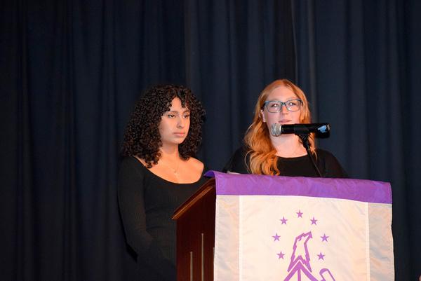 Carla Granados a New Vision Health student f Fallsburg CSD, Addison Kidney a New Vision H student from Eldred CSD, Zandy Valencia Bam an Early Childhood Education student from Li CSD, Joseph Park an Innovative Design Studen from Roscoe CSD, Angelica Rothberg a Public Safety Services student from Liberty CSD, and Sanna Woytowick a Basic Welding student fro Monticello CSD each explained the different components of the NTHS and its meaning beh its purpose, colors, emblem, insignia, and slog