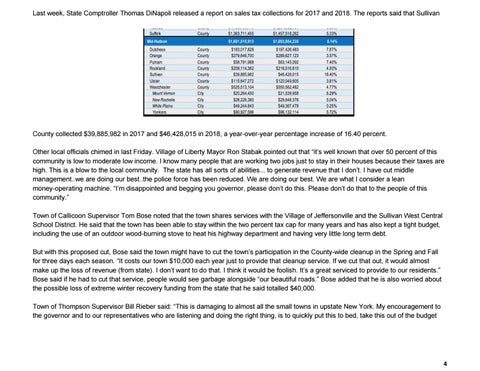 Last week, State Comptroller Thomas DiNapoli released a report on sales tax collections for 2017 and 2018. The reports said that Sullivan