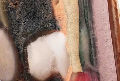 Yet, there are other insouciant or other-worldly elements at play, such as a random breeze through the studio or the luck of the perfect drying day. These earth, air and water elements are energetic parts of the artist’s ecology.