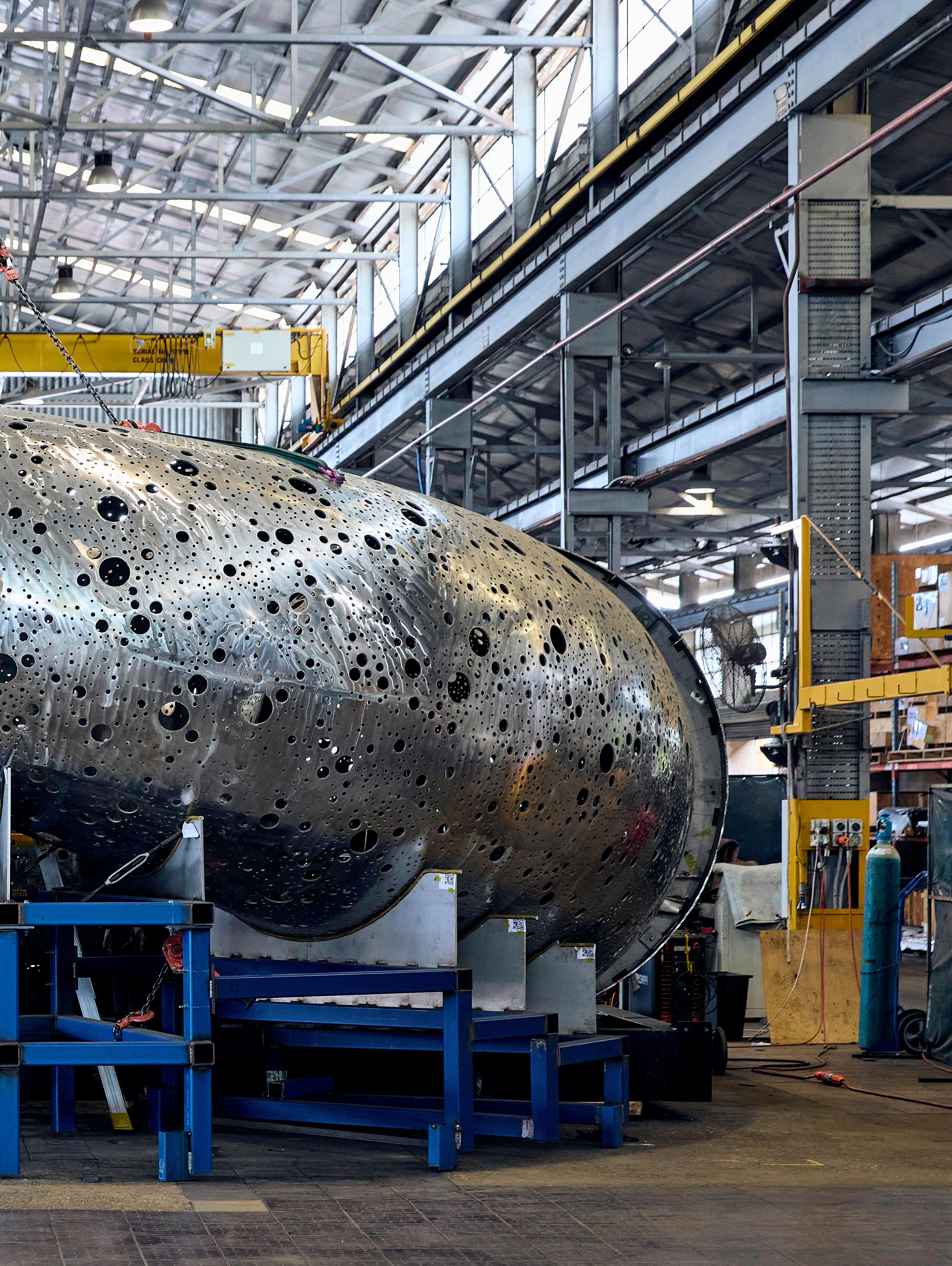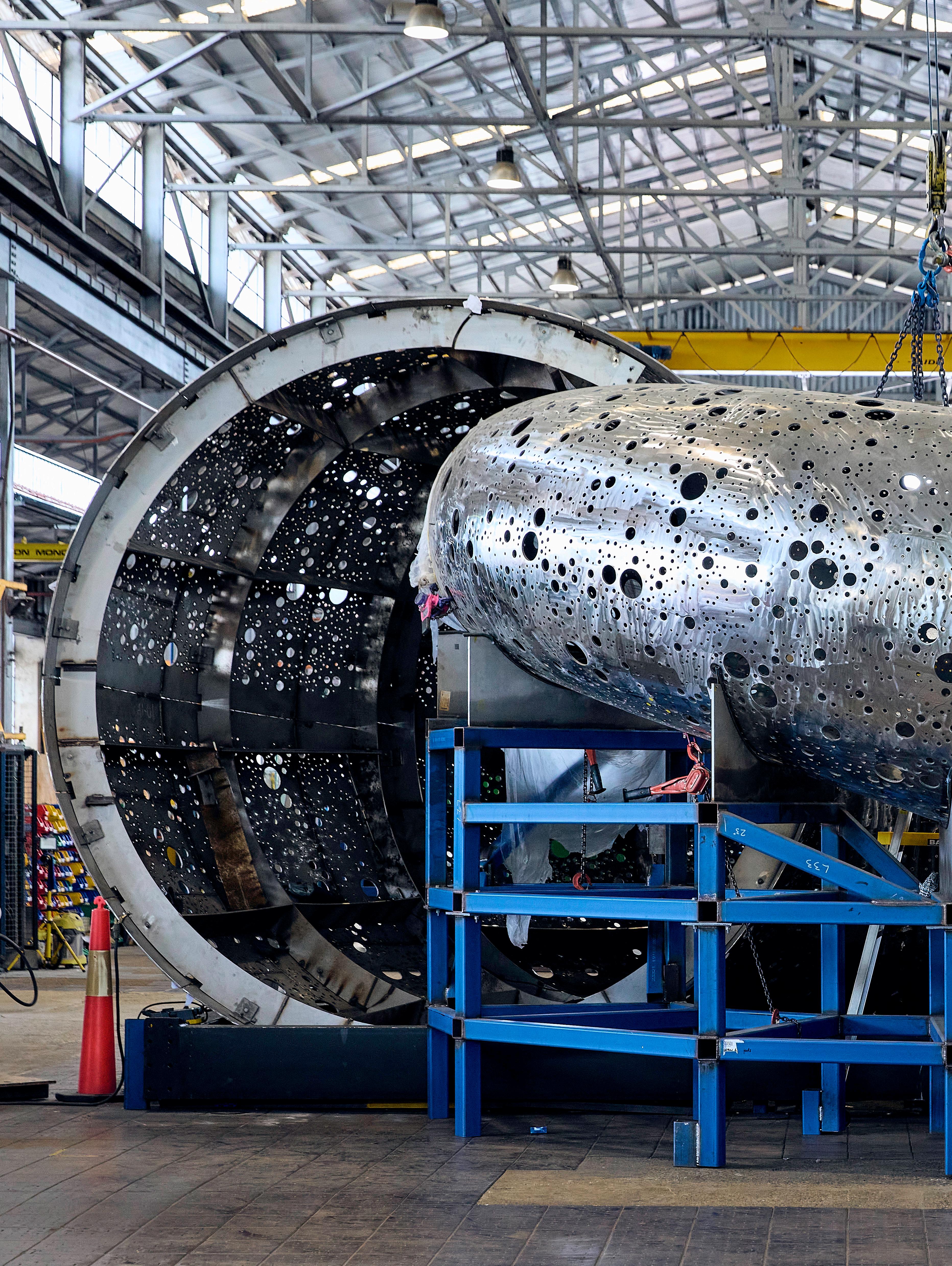 DH A momentous experience that has stayed with me was visiting Urban Arts Projects (UAP) in Meanjin/ Brisbane and seeing the work in the making. It was incredible to see Lindy’s profound vision coming to life with the talented team at UAP. It was the first time I really had a sense of the scale of the whole undertaking and the complexity of the work with the thousands of perforations across the stainless steel surface. I recall that Lindy stood in a section of the work which felt quite magical. There was the realisation of how it might be to enter it. This is a unique aspect of Ouroboros compared with her other public sculptures—that it has an architectural dimension in an organic way that allows the visitor to feel fully immersed in the experience.