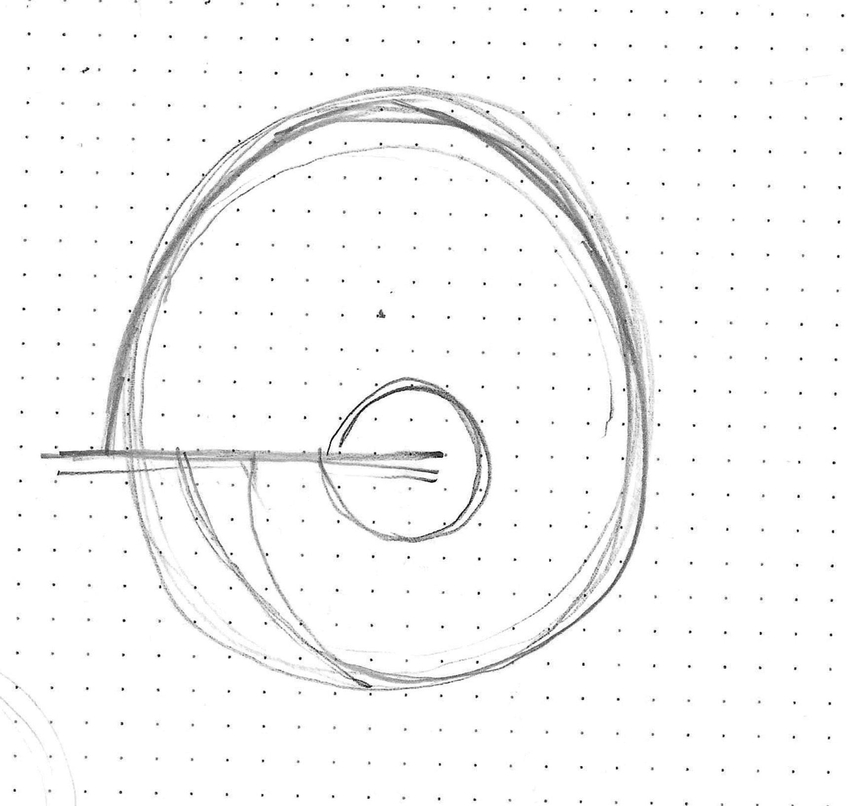 Above: Sketch of Ouroboros by Lindy Lee from early conceptualisation. Courtesy the artist. Opposite top left: Sandblasting Ouroboros at Urban Art Projects foundry, Meanjin/Brisbane. Photograph Rachel See. Courtesy UAP. Opposite top right: Ouroboros on the road from Meanjin/Brisbane to Kamberri/Canberra, June 2024. Photograph Sam Cooper. Courtesy the National Gallery of Australia. Opposite bottom: Mirror polishing of Ouroboros at UAP foundry, Meanjin/ Brisbane. Photograph Rachel See. Courtesy UAP.
