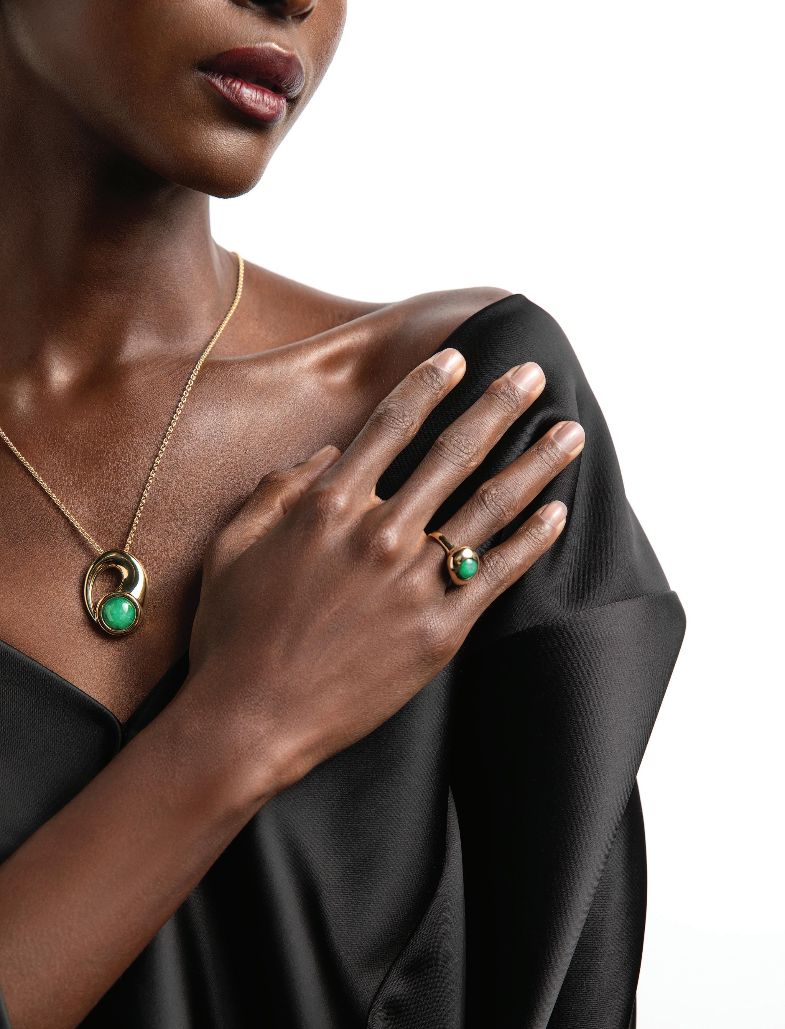 As part of the collaboration between Pallion and Lee, jewellery-maker Palloys has crafted the Xiaolong collection of gold and jade jewellery inspired by and launched alongside Abundance Representing the deep connection Lee shares with this stone and precious metal duo, the collection—comprising a ring, earrings, pendant and cuff bangle—is available in a limited edition quantity and attainable through the National Gallery Art Store from October 25.