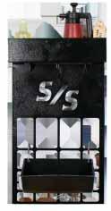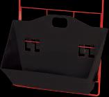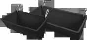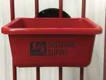 The Pen Caddy is manufactured from precision laser cut 16-gauge steel to create the utmost in longlasting durability. It is finished in Black Hammer Tone Powder Coating for long-lasting beauty and corrosion protection. Easily hangs from the top bar of any pen fence tubing that measures up to 2” diameter. The inside opening of the top supply box measures 19.25” long x 8” wide x 4.75” deep. The box extends over the top of the pen, so it does not protrude out into the aisle. Also features a handy whip storage tube in the corner of the box. It allows the whip to be inserted and stood up, out of the way. On the aisle side of the box, two hooks have been placed to allow for hanging supplies. The laser-cut grid design allows the feeder to be attached at multiple heights. The tie-down chains prevent hogs from lifting the Pen Caddy off the fence. The hanger is 35” tall. Feeder is sold separately.