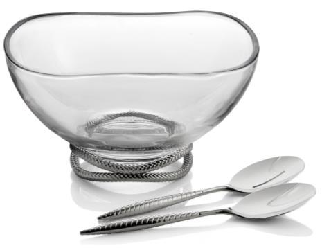 Braid ensaladera de vidrio con cucharas de servir