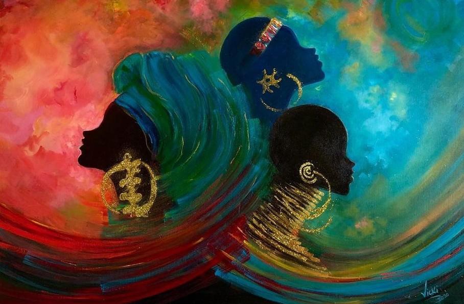 Painting by Victoria Adoe, titled: African Princesses, Medium: acrylics on canvas (2020).