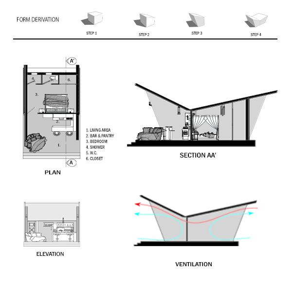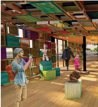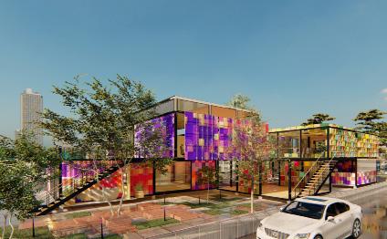 Pixels have been used as the concept of this design. The idea of pixels gave us the flexibility to play with the arrangement of the containers of size 20 X 8 ft. which helped us to bring out a colourful and vibrant design which breaks the conventional model for small office spaces. The studio has been provided with the versatile areas which can be used in different ways. The aesthetic interiors and the pleasant view through the windows create a lively atmosphere in the studio. The designer’s desk faces the window giving them a beautiful view and creating a peaceful ambience which would help them think and develop their design. The atmosphere of cafe is also playful and lively. A modular pavilion is given in whichh modular pixel boxes can be used as seating while music events, seminars, workshops or talk shows take place. The studio cafe and pavilion are connected by a courtyard.