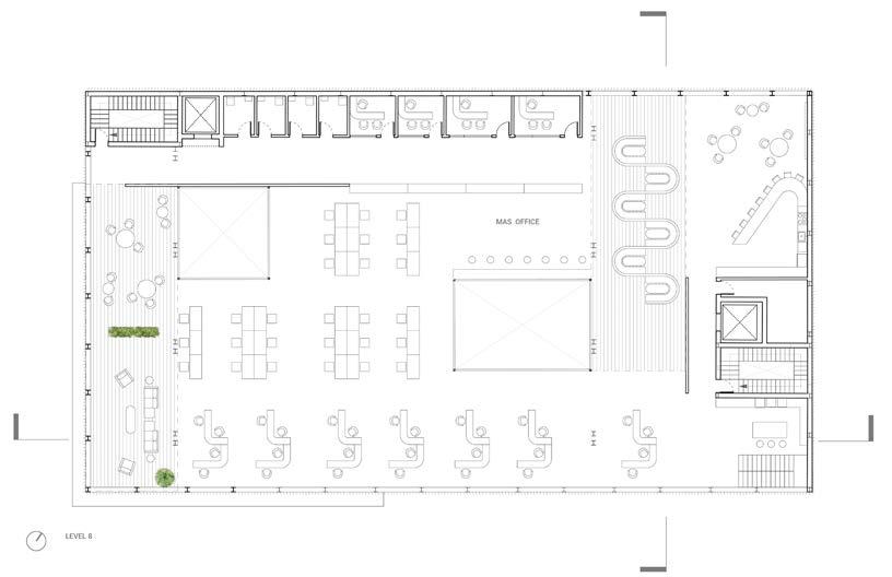 In line with the Municipal Art Society’s (MAS) drive for public agency, Privately Owned Public Spaces (POPS) are reimagined as catalysts for productivity, transparency and community engagement. The proposed office building for MAS is located in the Greenwich Village neighbourhood, across from the historic Washington Square Park and close to the New York University campus. This desire to activate public-private space reflects in the building’s character, programmatic organization and design.