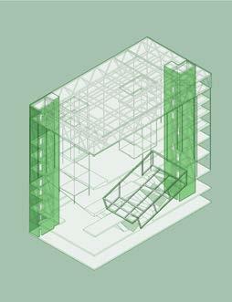 A ramped plant animated path extends the public realm further into the building by creating relief zones for individual and collective reflection, therefore providing alternative co-working conditions.