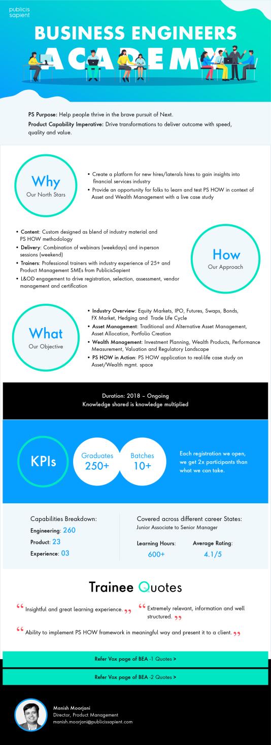 VOX site page mockup for PS ‘Product Business team’ with banner, infographics, different Icons for respective topics, and so on keep in mind the target audience and their journey