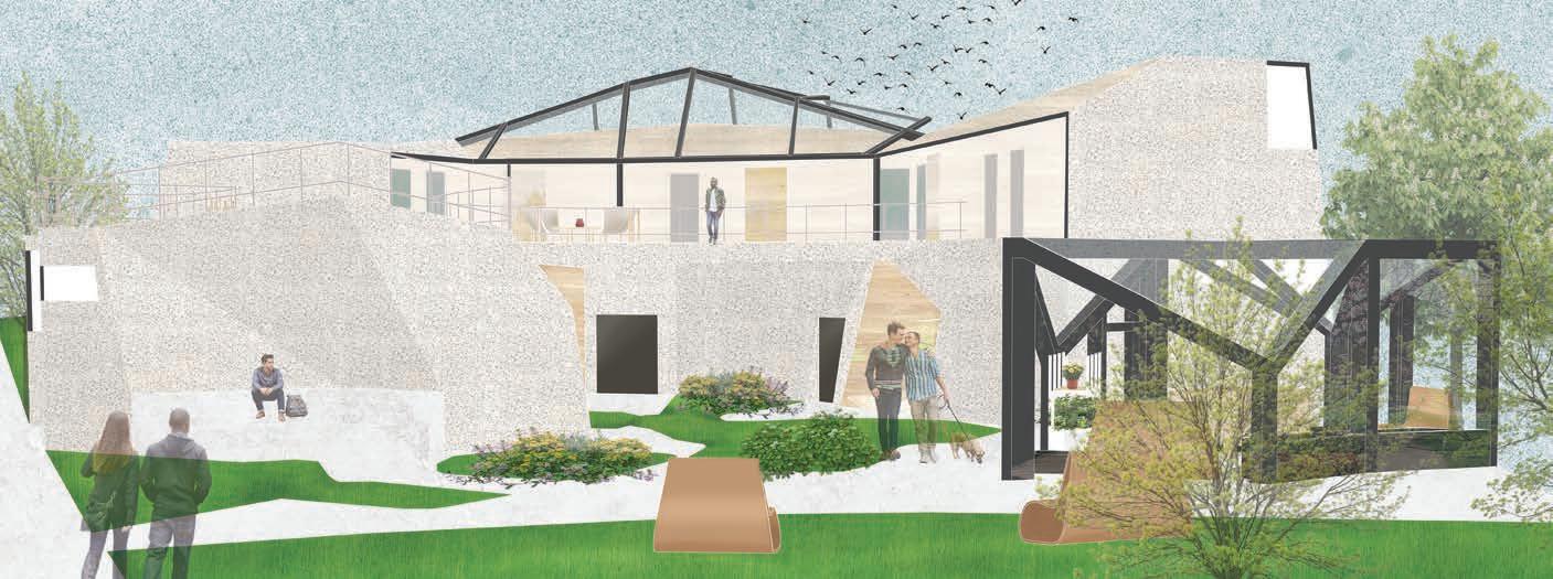 front that has triangular stone structures for graffiti before they enter the gallery where the art continues. There are plenty of spaces within the gallery building to view the art as well as to enjoy the view that Bessemer has to offer. At the back of the gallery is outdoor seating for the cafe as well as four studios for artists of different trades to be able to work in for free. These spaces encourages the creation of art and expression is an area that is facing economic hardship, offering a platform for the community to engage with creativity and foster cultural growth.