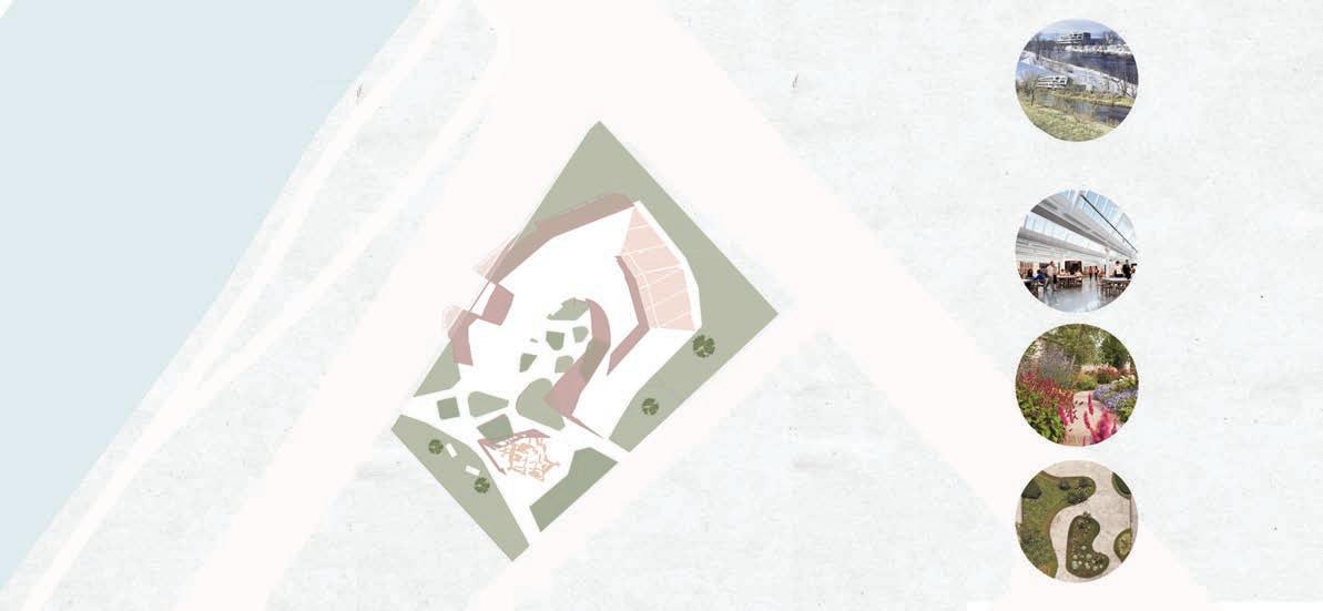ty to fully experience and appreciate the beauty of the pond. Wooden columns outline a suggested path for navigating the pavilion. The roof offers shade and mimics the rolling hills of the Rocky Mountain foothills. Additionally, the roof features a sun deck where visitors can relax and take in the beautiful views. The Pavilion offers a tranquil escape on Gravel Pond, blending with its natural surroundings. The design enhances the experience for the paddleboarders and kayakers alike and encourages the users to celebrate the stunning views and have fun.