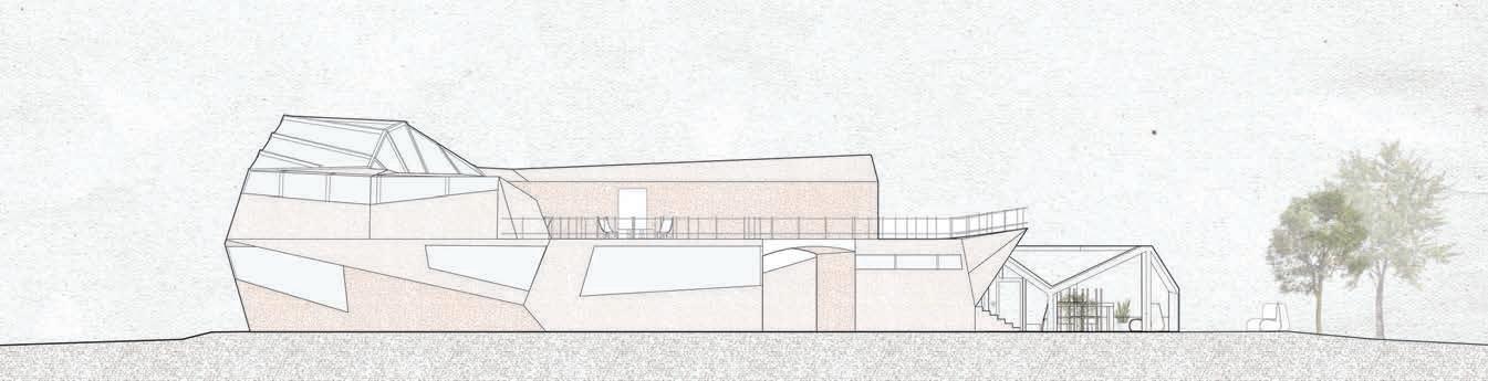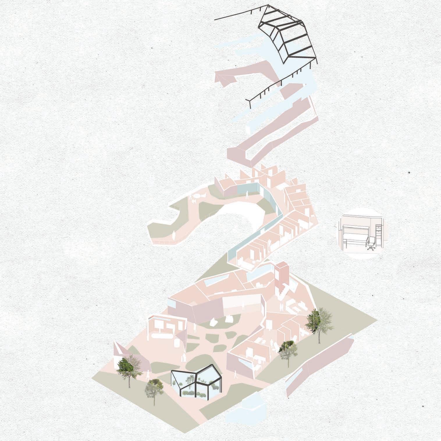 types of Thinkers, Tattoo Artists and Social Psychologists, will interact with the affected residents to develop positive mental and physical transformations. The Residency design creates the space and opportunity for a personal reset to improve the Thinkers’ wellness and creative process. The enfolding approach to the design encourages self-reflection, collaboration, and interactions between the Thinkers.
