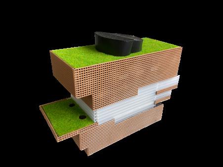 The building is divvyed up into three portions, the lower, public floors serving as a marketplace and dining halls, the middle portion as a large atrium for hydroponic equipment to grow plants and small trees with an outdoor garden, and the upper, more private floors for the cooking institute, auditorium, and rooftop garden. Despite the segregation of these parts, they also come together as a whole by serving needs to one another. For example, the cooking school floors hosts a restaurant in which guests can experience a practicing chef’s cooking, and the produce grown in the greenery can be sold by vendors in the marketplace.