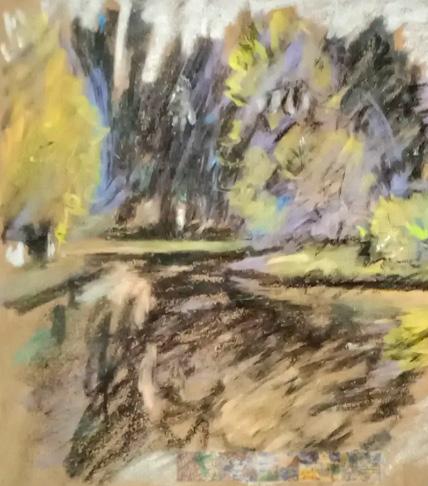 This artwork is a small sketch that Irina made in the area that she lives. She depicts autumn trees and the Svisloch River, Belarus.