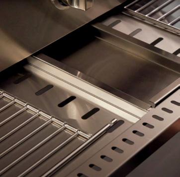The Easy-Clean Briquette system helps distribute heat and preserve the stainless steel burners, while the square cooking grates increase the contact surface with food, adding beautiful grill marks and unparalleled flavor.