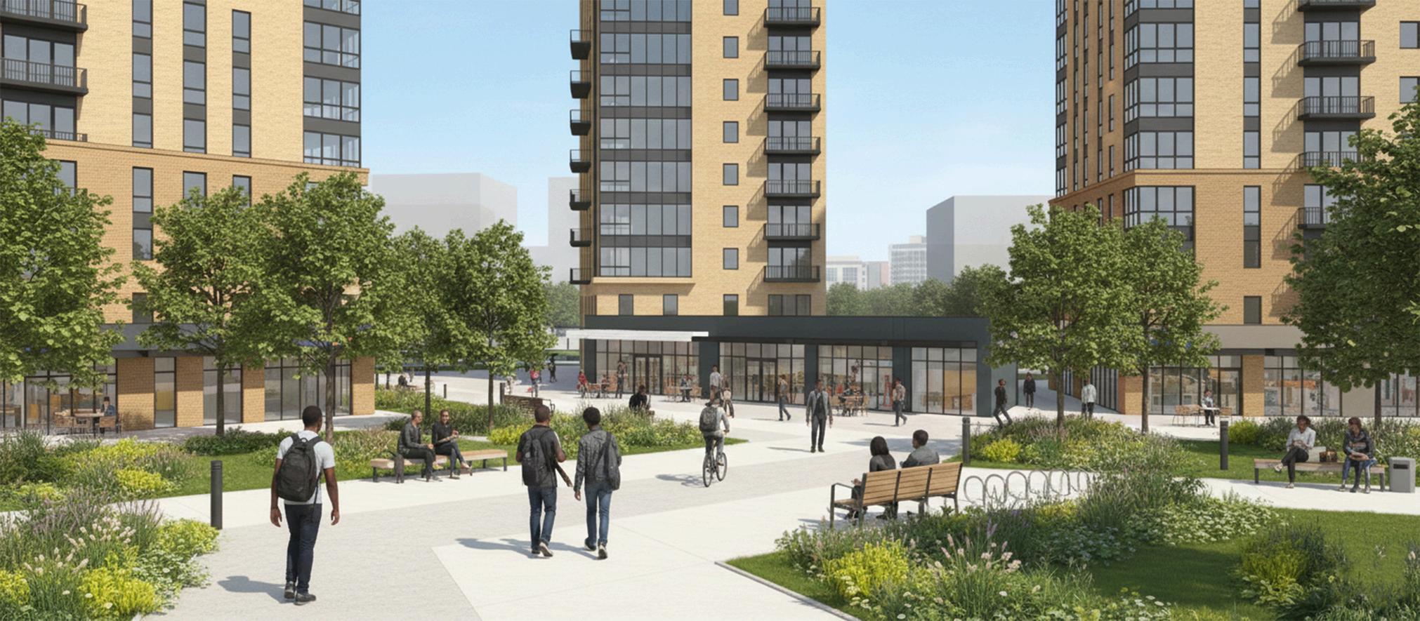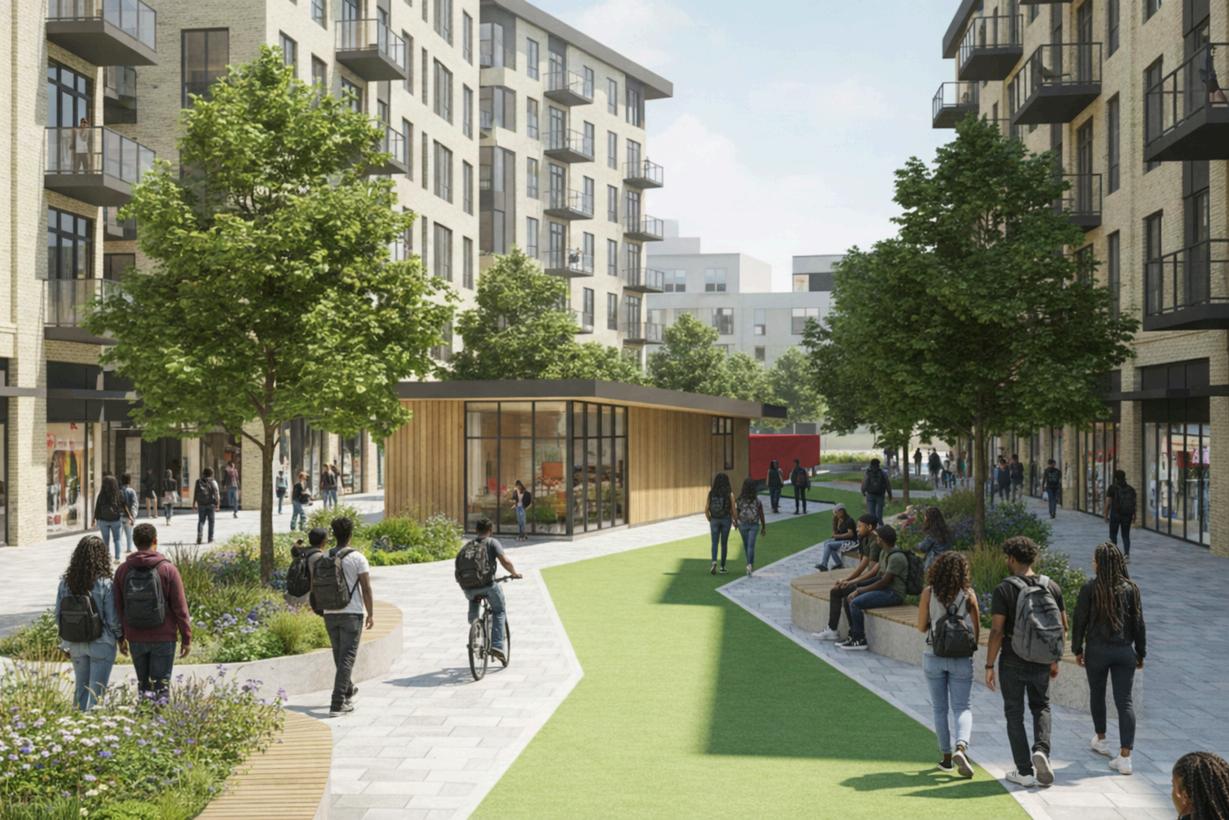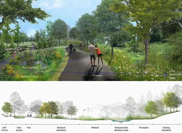 This multi-use trail includes stormwater features, native plantings, and outdoor classrooms, enhancing campus-neighborhood ties similar to Westside’s boundaries.