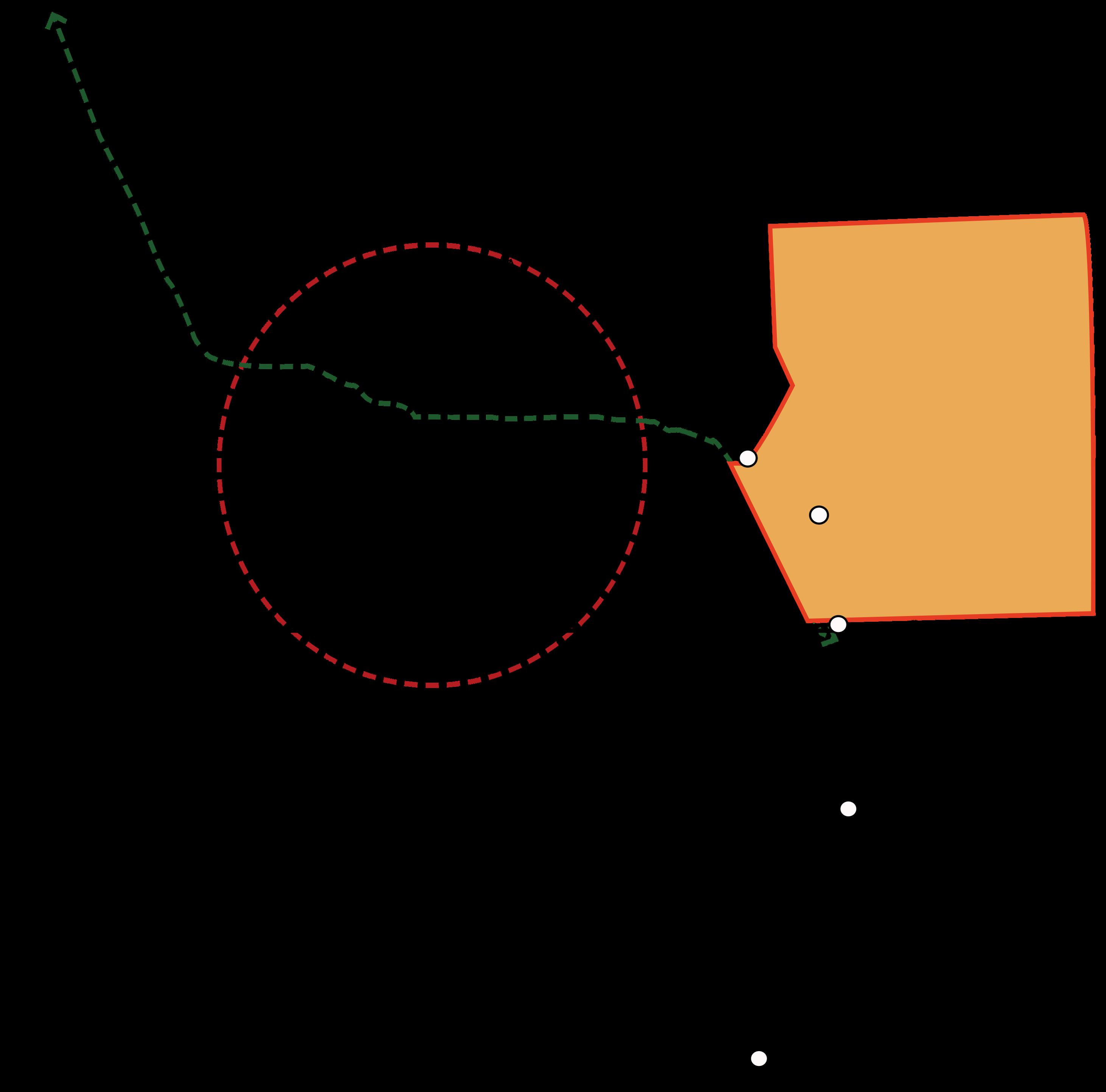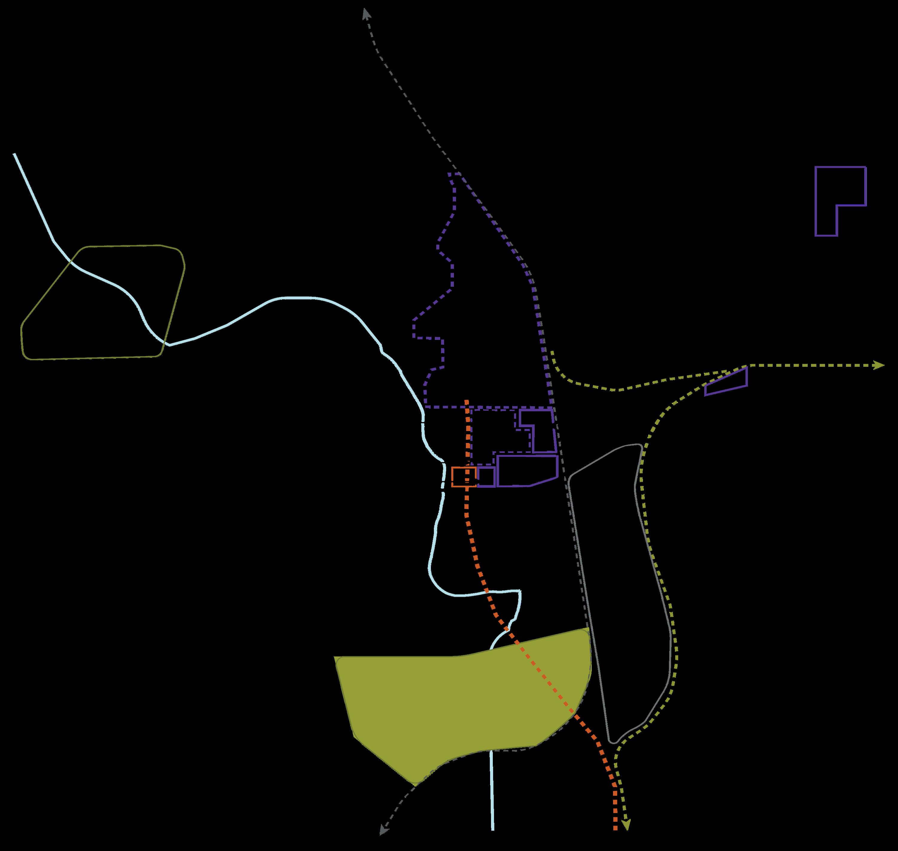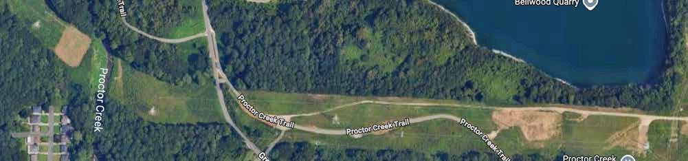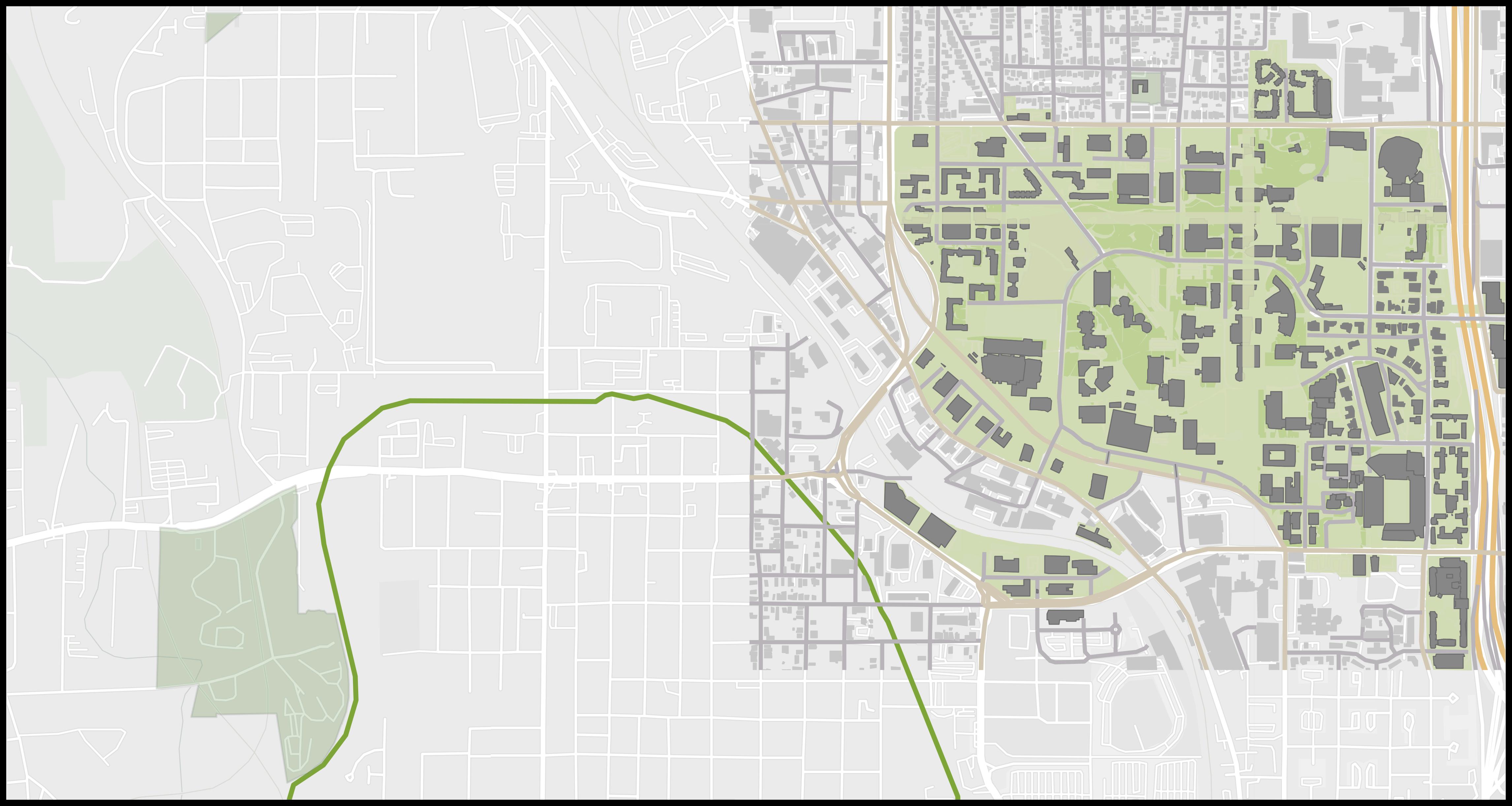 (Park walking trail that transitions into a bridge and feeds back into another green space