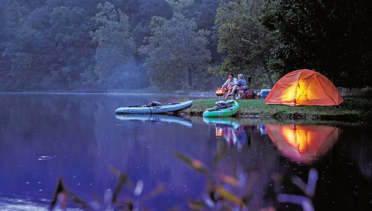 WHEN WINTER BREAKS AND THE weather turns warm, it’s time to dust off the camping gear and plan a trip to the mountains. And with plenty of wide-open public lands, the Blue Ridge region is chock full of great options—though some are more kid-friendly than others. But don’t worry, we’ve got you covered. From lux glamping to primitive sites in a picturesque forest, these six campgrounds bring amenities and destination-worthy outdoor adventures that offer something for everyone.