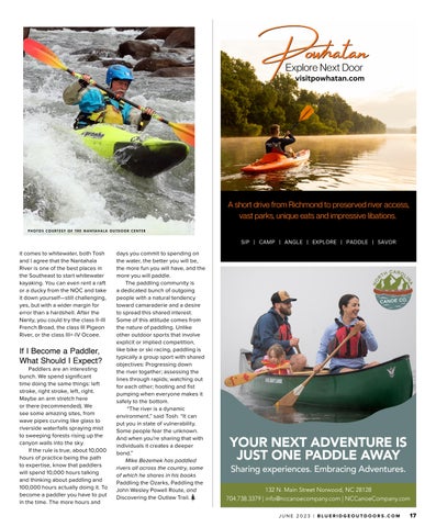 This is what happened to Tosh Arwood, manager of the paddling school at the Nantahala Outdoor Center in Wesser, N.C. While living in Raleigh, he became friends with an expert paddler and former whitewater slalomist, who helped Tosh get started and offered advice on techniques.
