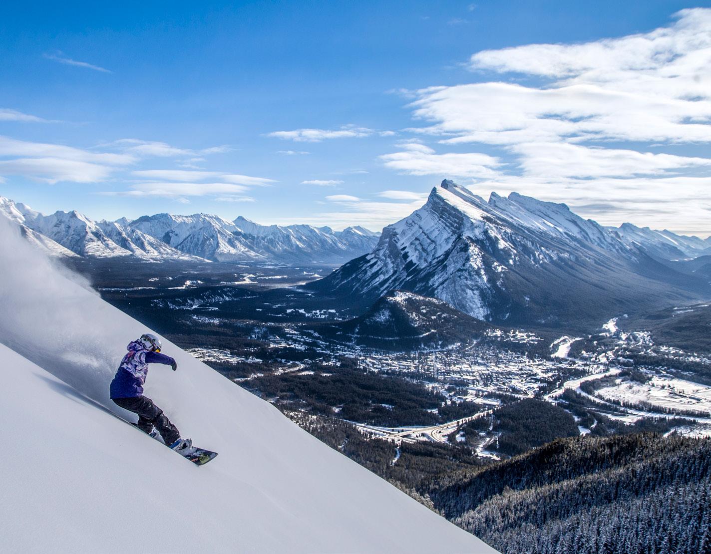 Up over the border in Alberta, you’ll find skiing and riding for all ability levels, friendly faces, and hot tubs galore at Banff, and the Canadian Rockies’ sweet SkiBIg3 Resorts
