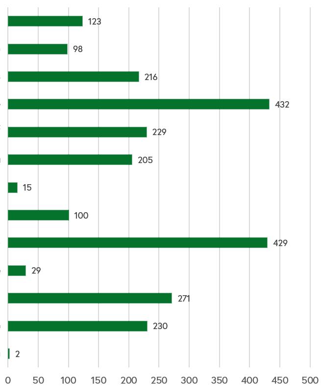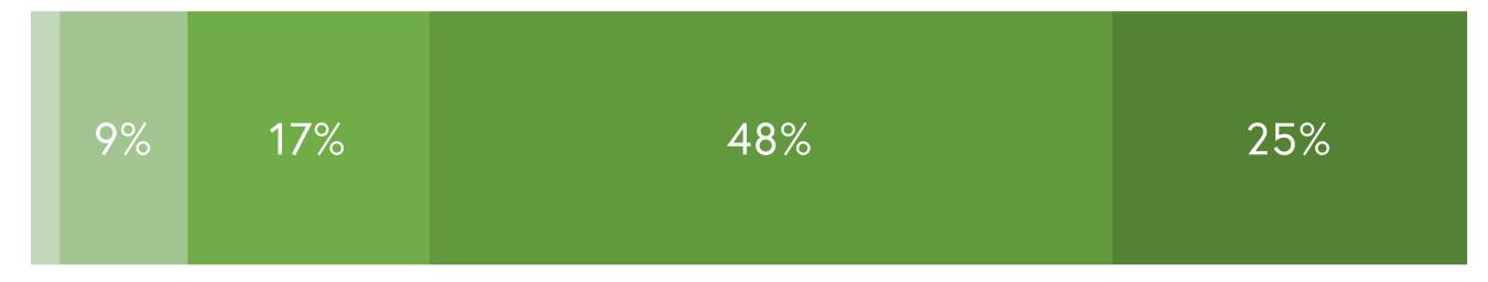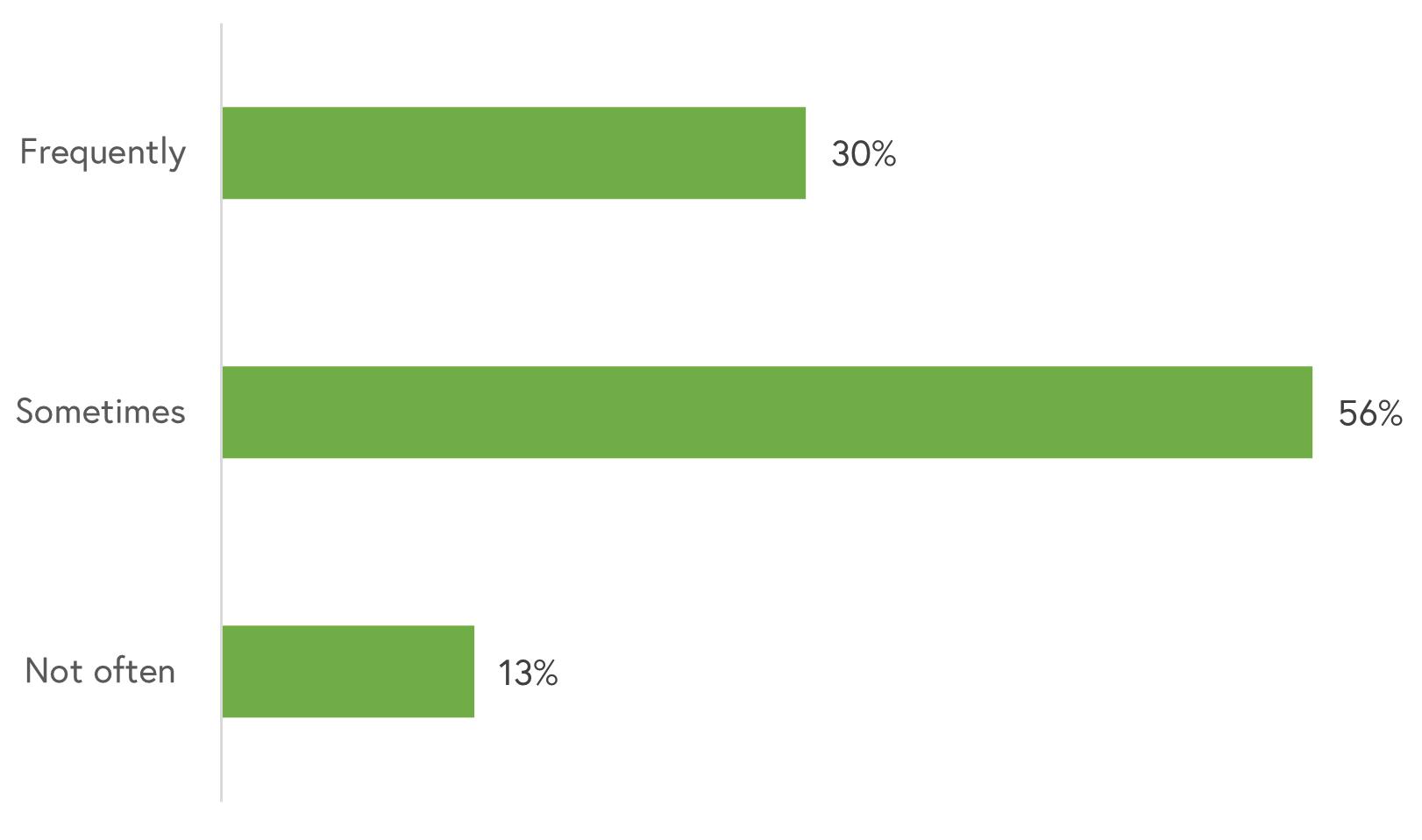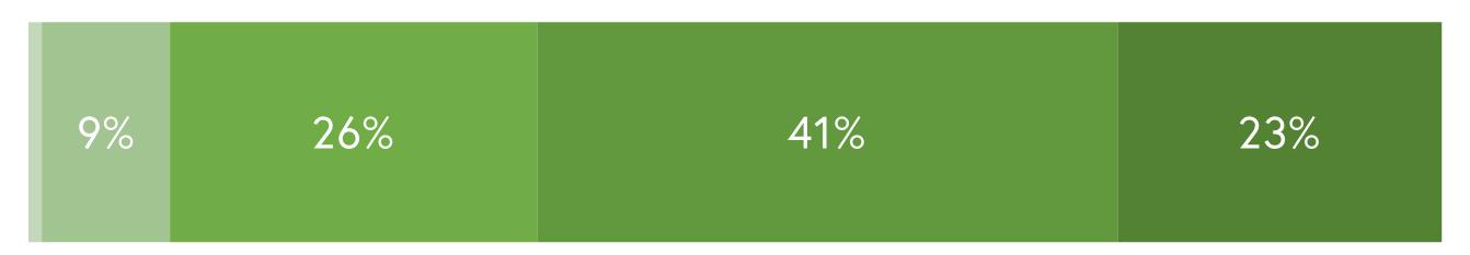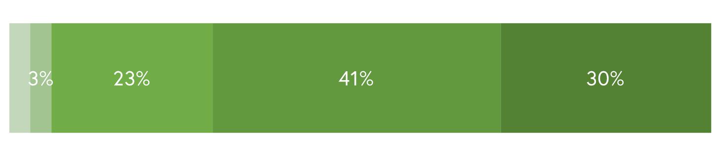 45% of respondents visit Woodstock’s parks once or twice a week, while 41% of respondents visit the town’s parks once a month or never. 14% of respondents visit Woodstock’s parks almost every day.