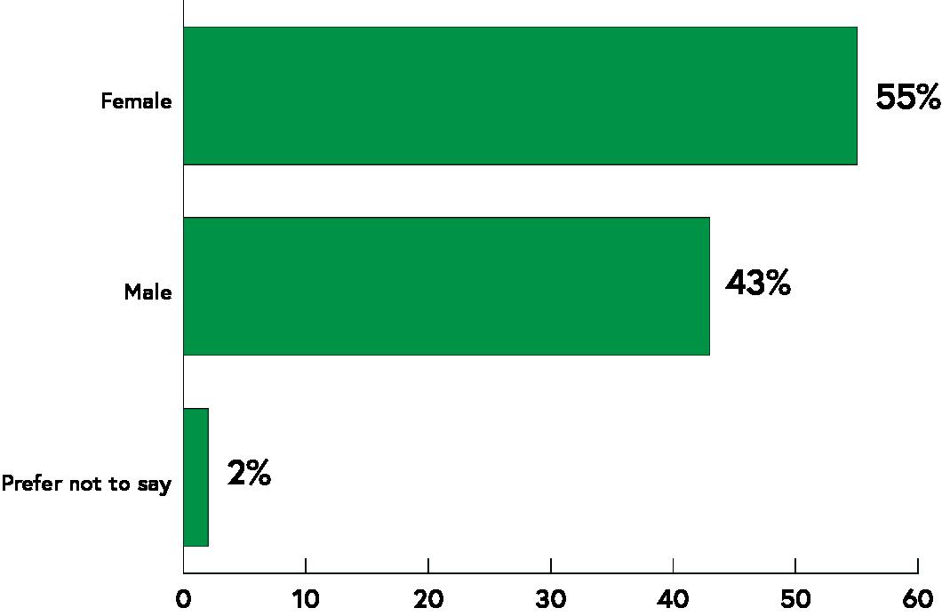 A majority of respondents were women, representing fifty-five percent of all respondents, nearly ten percent more than male respondents.