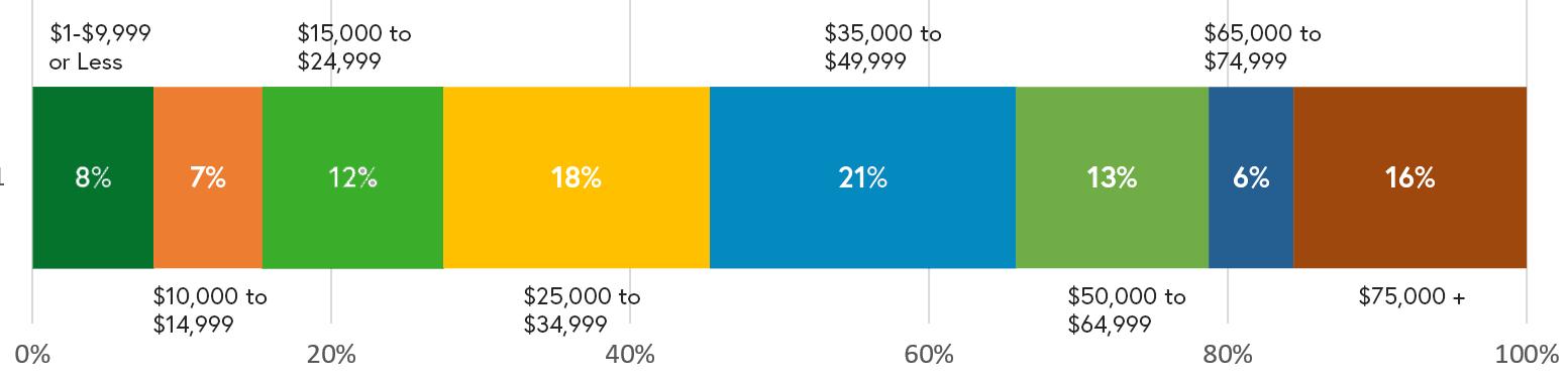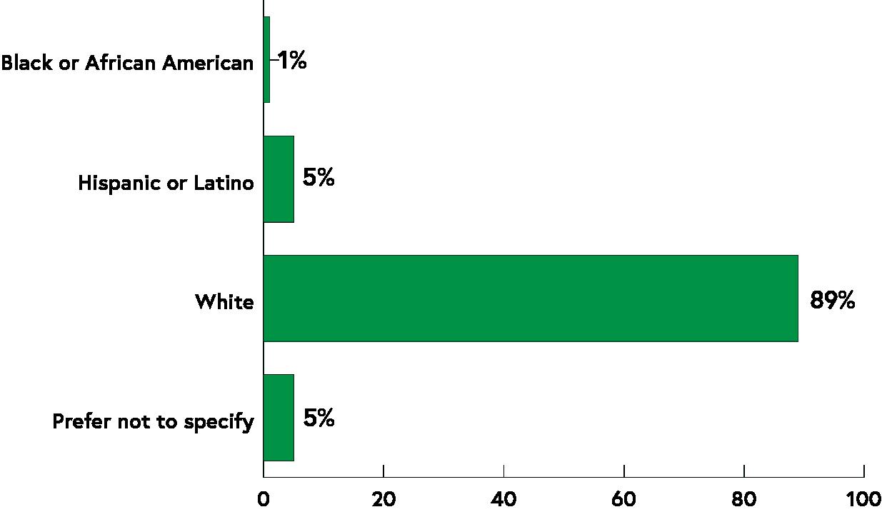 Nearly all respondents identified as White, representing eighty-nine percent of all respondents. This survey does not capture the best sample of Woodstock’s true racial and ethnic demographics, and future surveys are needed to get a more representative sample.