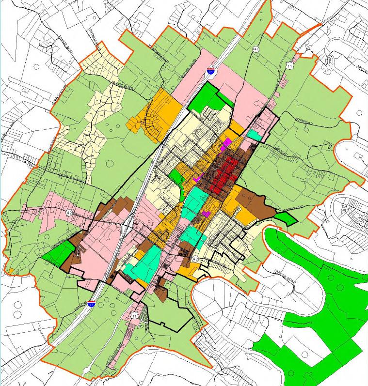 A locality’s Zoning and Subdivision Ordinances are the most significant and powerful vehicle for implementing the Future Land Use map in the Comprehensive Plan. The Future Land Use map (located on page 123 of this document) shows the general character desired for various parts of town in the future, and is implemented by changes to the Zoning Ordinance or Official Zoning Map, dictating how property may be developed. Over time, this changes the character of the built environment to that envisioned by the Comprehensive Plan.