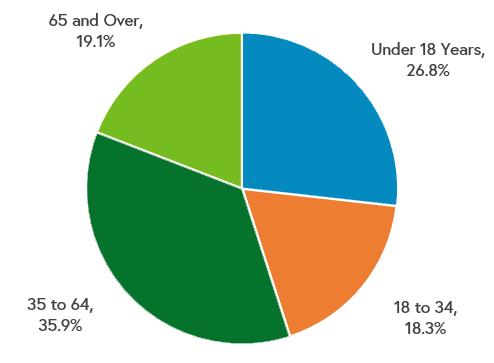 Median Age: 39.1 Men: 37.3 Women: 41.8