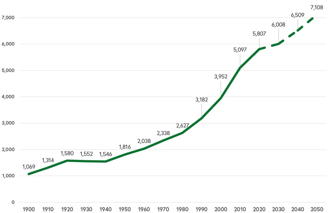 Source: 1900- 2020 Decennial Census, Weldon Cooper Center for Public Service