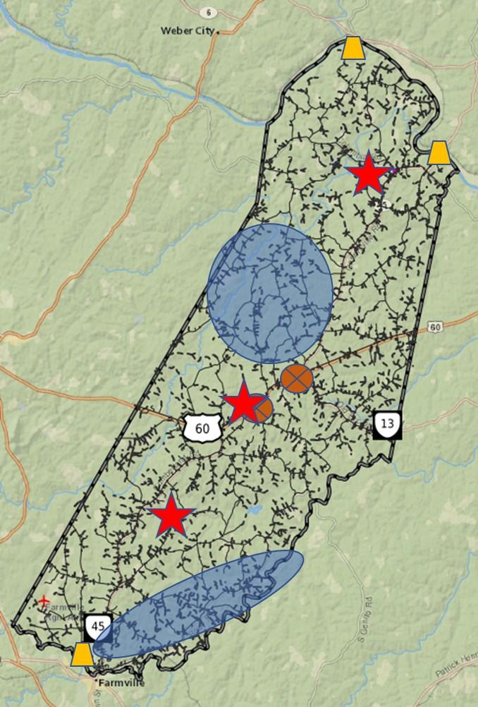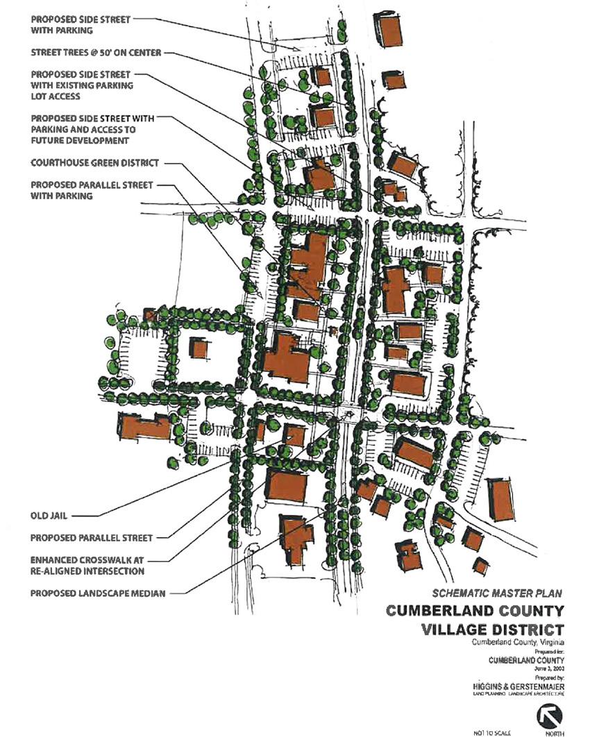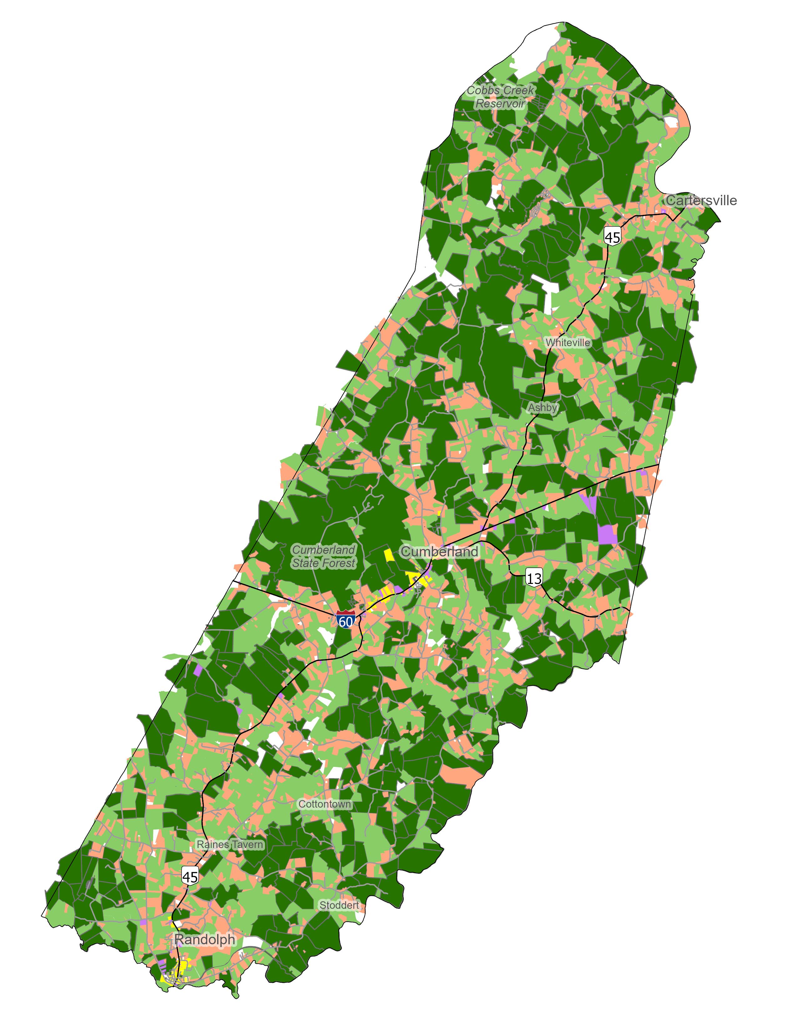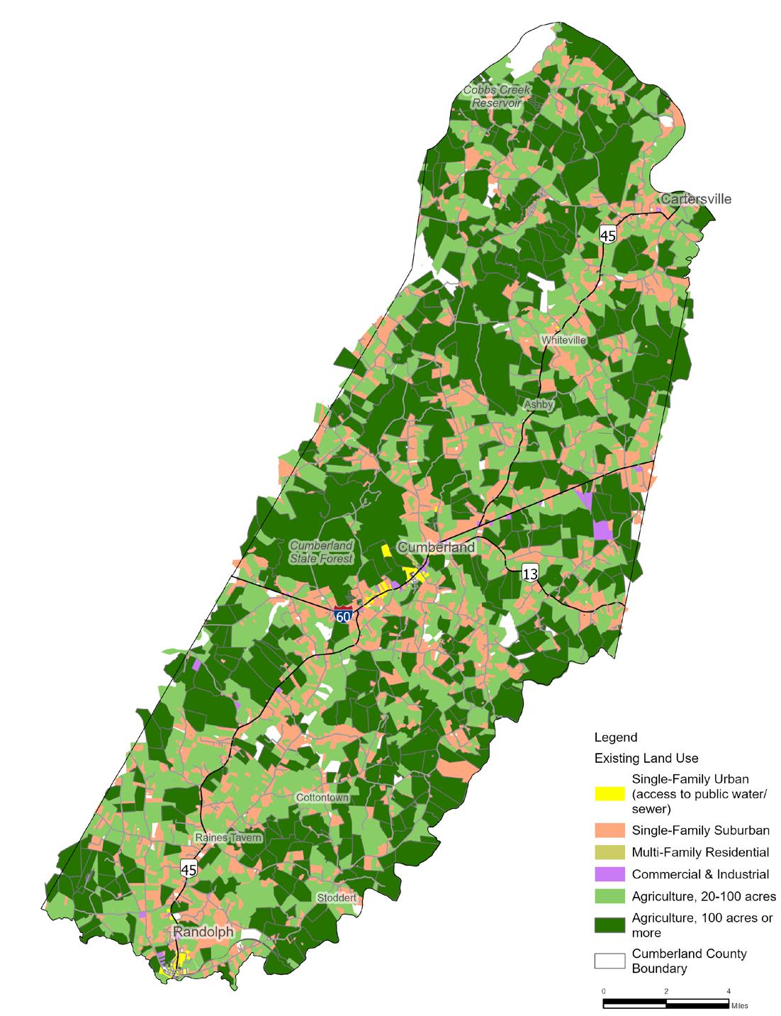 Directing growth to central village centers will help create local environments for Cumberland’s citizens to thrive in. Rather than allowing development to sprawl across the County and encroach on agricultural areas, high quality development can be maintained in specified village centers. These village centers include the Randolph area, north of Randolph, the Cartersville area in the north of the County, Cobbs Creek Reservoir area also in the north of the County, identified “Rural Crossroads” throughout the County, and Cumberland’s namesake and central court house area.