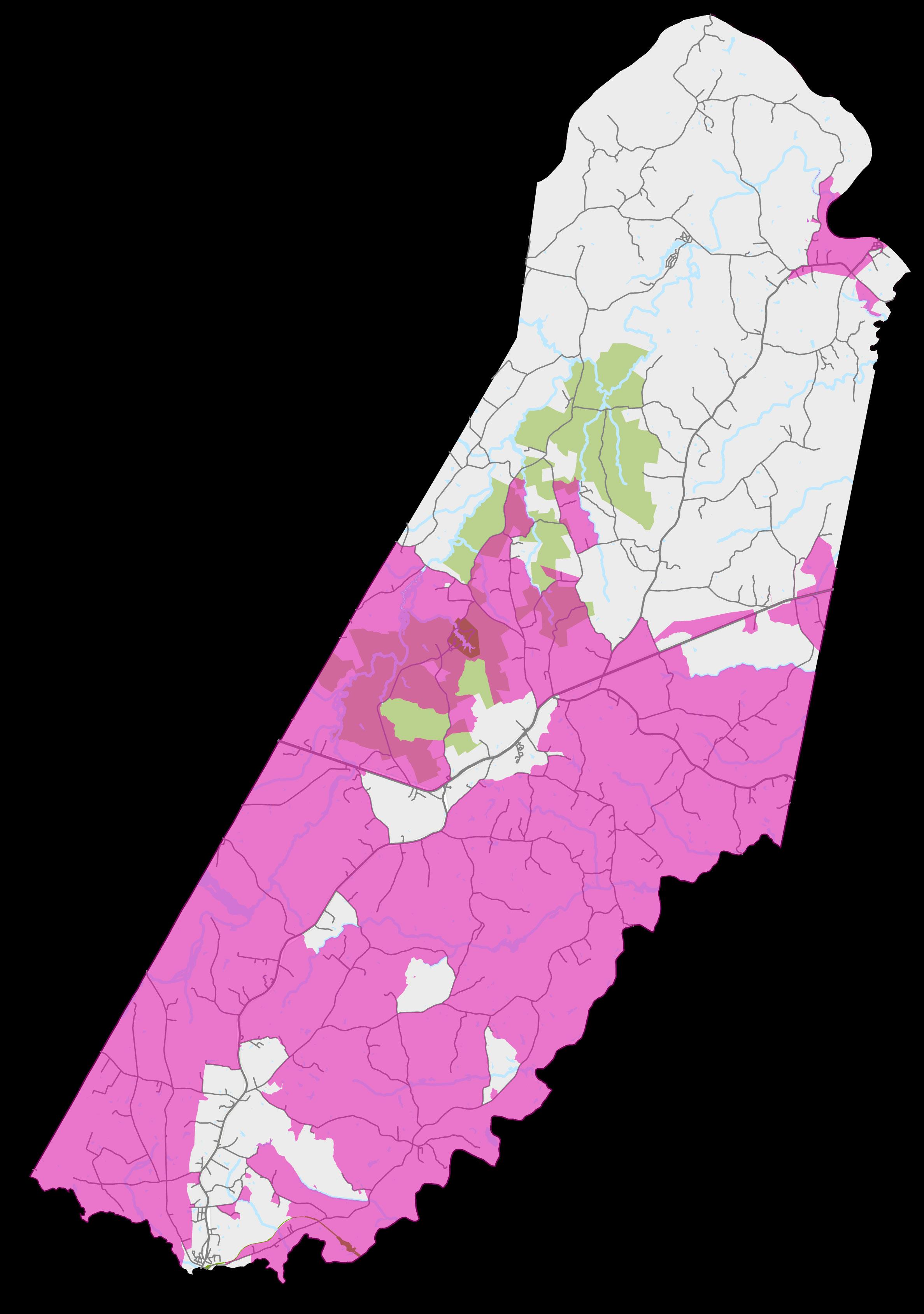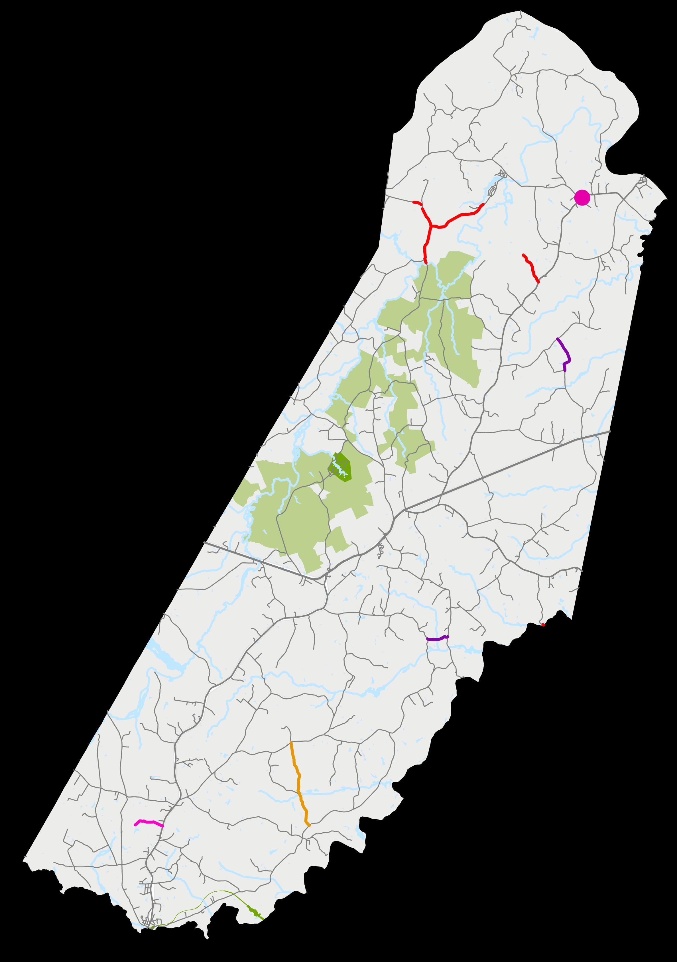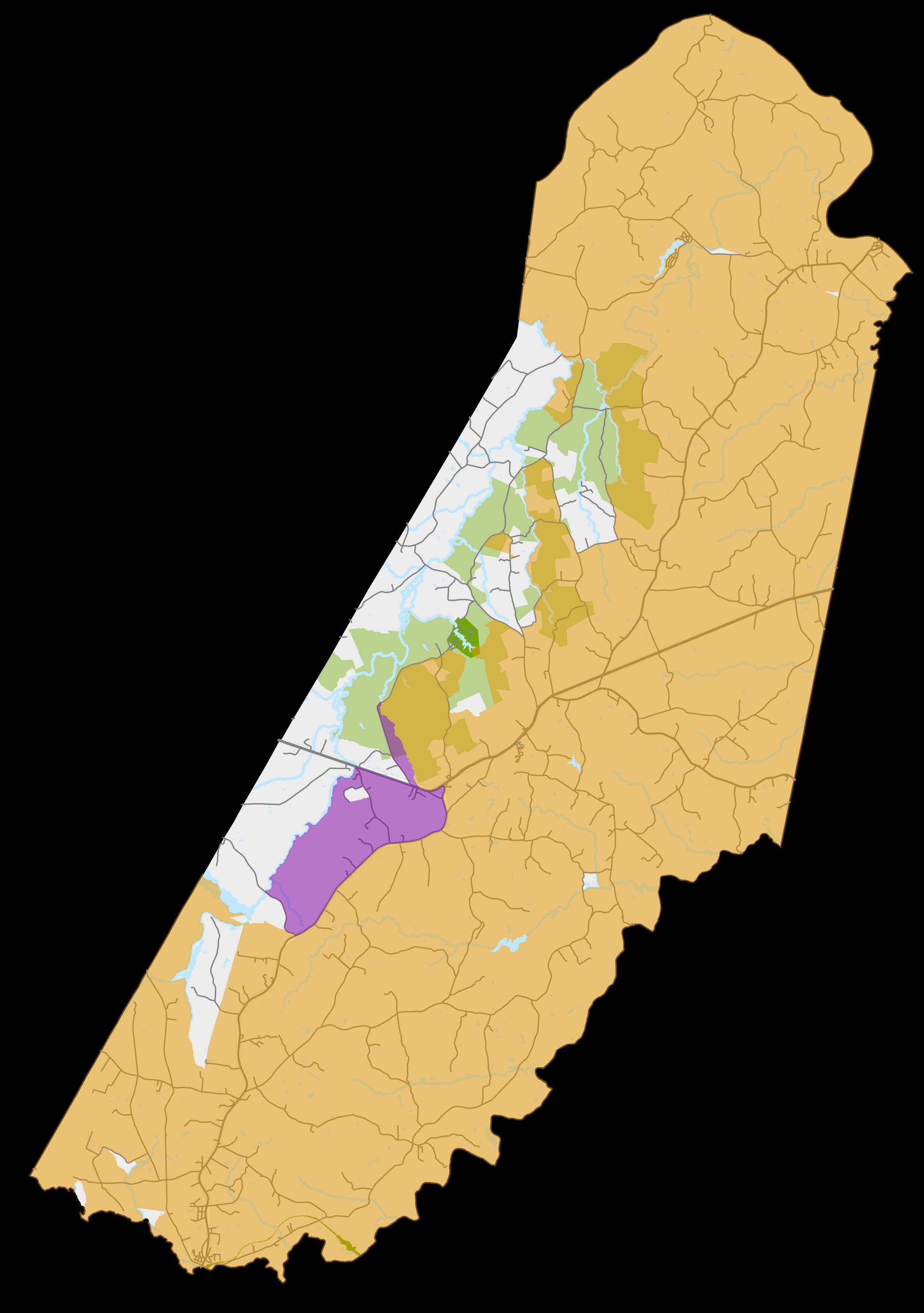 Across all of Cumberland, residents of the County live no further than a stones throw from a nearby named “Rural Crossroad.” Trents Mill, Hatcher, Hamilton, Whiteville, Ashby, Stoddert, Raines Tavern, Cotton Town, or Angola, are all examples of this type of village center. These village centers are very targeted to the crossroads they are along and accommodate smaller scale stores or new housing units that help improve quality of life across Cumberland. They are not intended to allow sprawling growth to encroach on the rural countryside and agricultural economy.