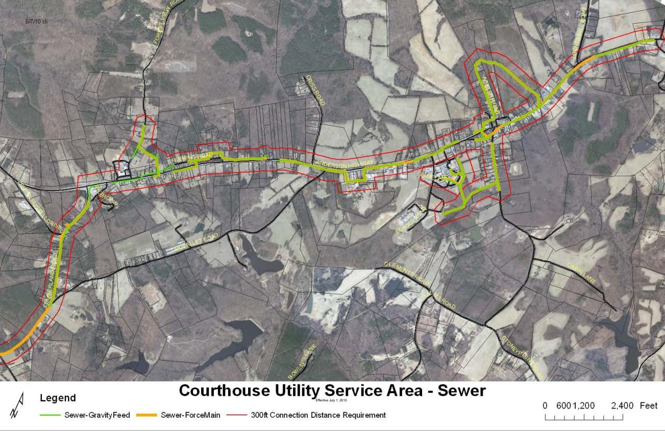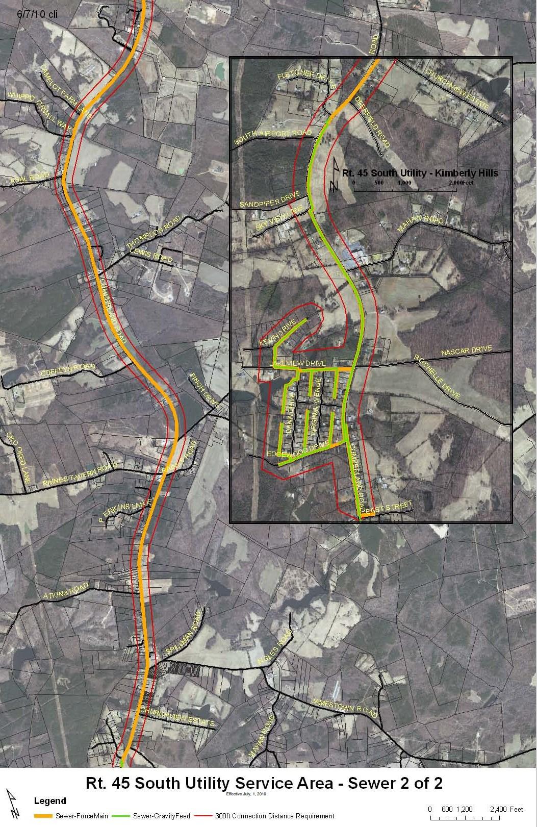 c. Work to address water and sewer capacity in the court house area and along Route 45.