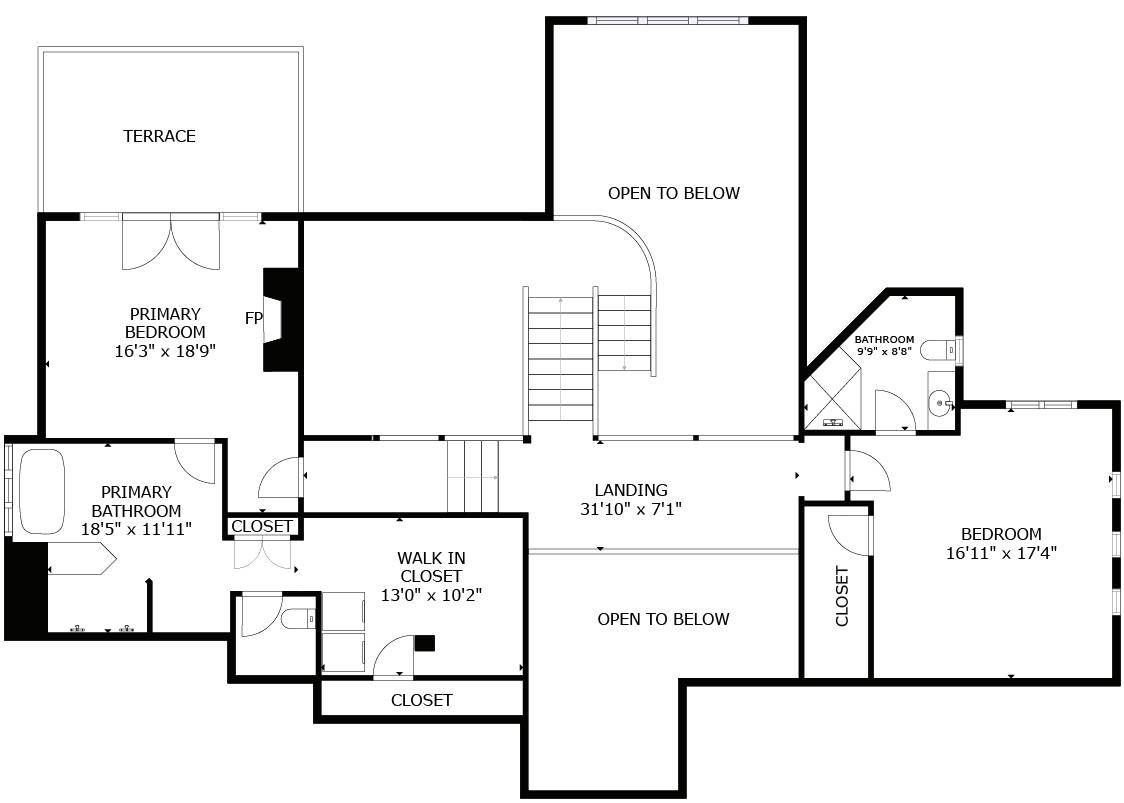 - Upper-level landing that overlooks the family room